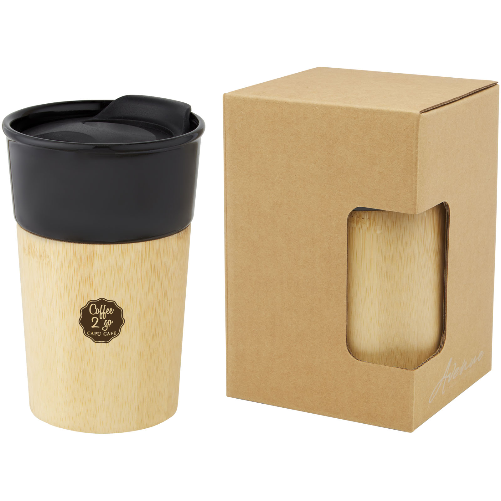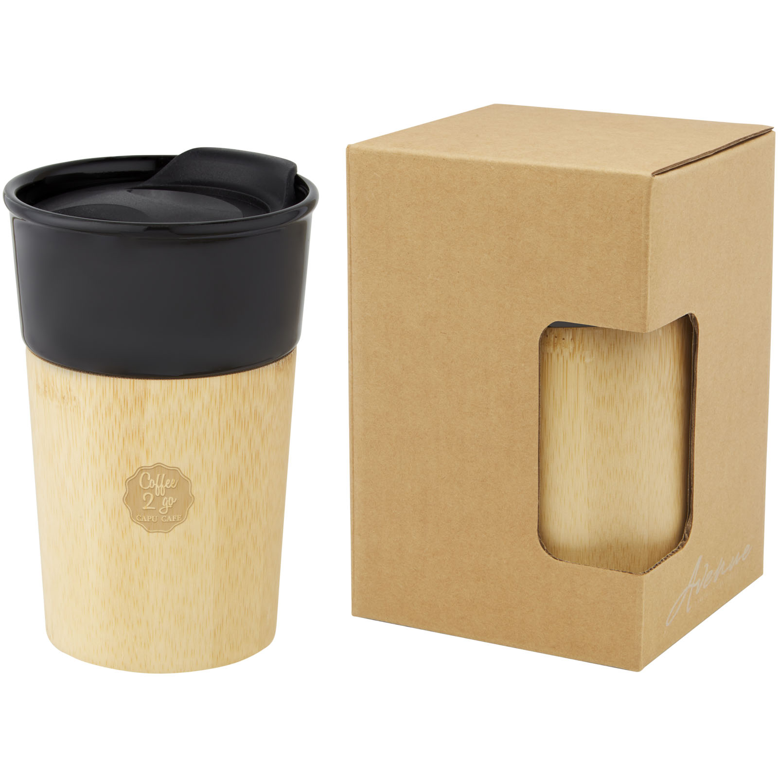 Eleganter Porzellanbecher mit einer Außenseite aus Bio Bambus, was ein natürliches Aussehen und ein angenehmes Griffgefühl bietet. Der Pereira Becher verfügt über einen auslaufsicheren Schiebedeckel zum Aufstecken und ist BPA-frei. Das Fassungsvermögen beträgt 320 ml. Handwäsche empfohlen. Verpackt in einer Geschenkbox aus Recyclingkarton.