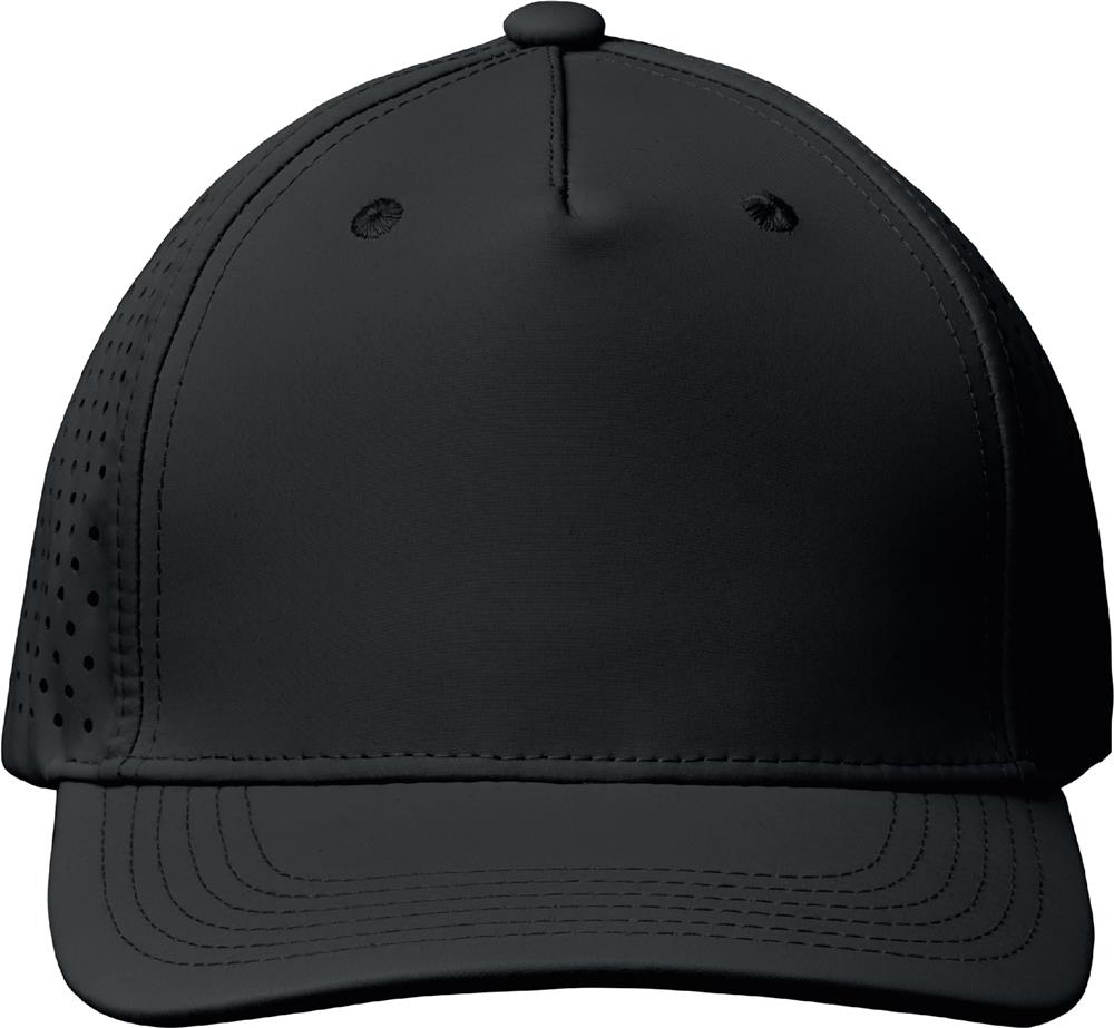Performance Kappe. 5 Panele. Verstellbarer Klettverschluss. Laser geschnittene Belüftungslöcher, 2 farblich abgestimmte, umstickte Ösen. Der Artikel ist schnell trocknend, schweiß- und wasserabweisend. Polyester 130 g/m².