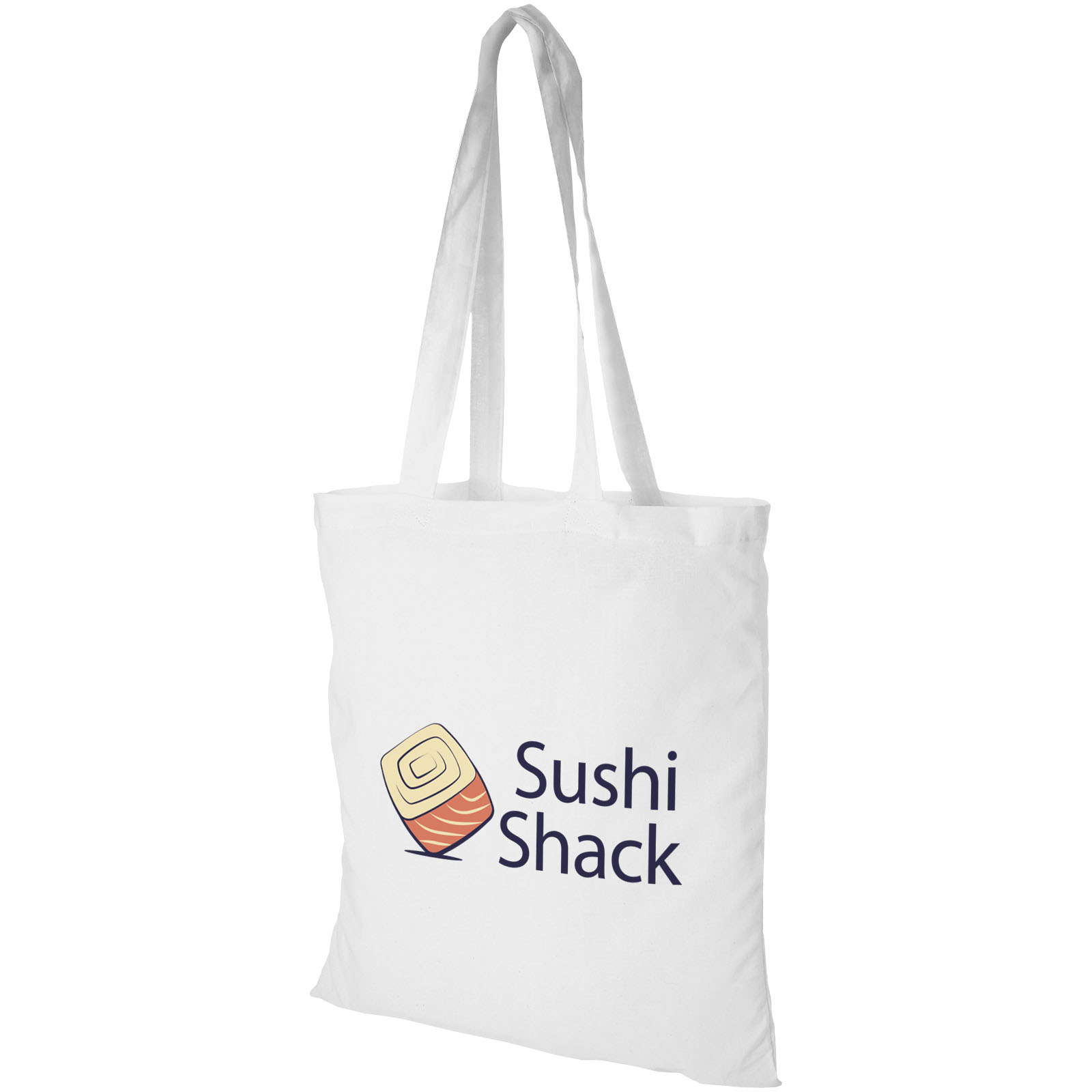 Robuste und langlebige Tragetasche aus 180 g/m² Baumwolle mit einem großen Hauptfach und maximaler Sichtbarkeit für jedes Logo. Das robuste Baumwollmaterial eignet sich für den Transport von schwereren Gegenständen. Die Griffe sind 30 cm lang und damit lang genug, um die Tasche auf einer Schulter zu tragen. Belastbar bis zu 5 kg.