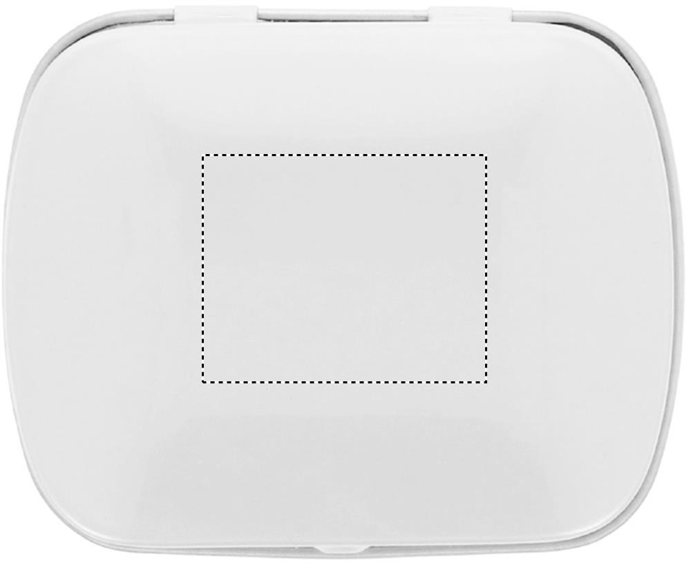 Praktische Dose mit Pfefferminz. Inhalt: ca. 25 g.
