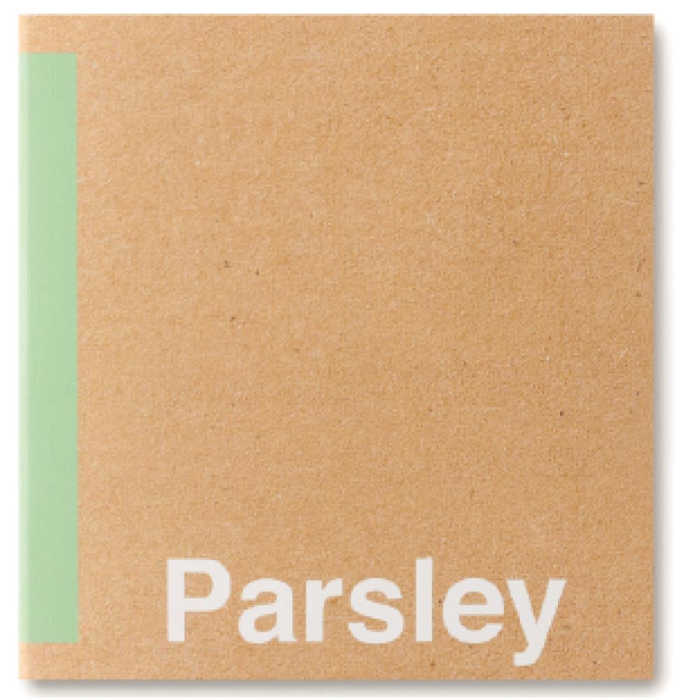Pflanz-Set ''Petersilie''. Bestehend aus Anbausubstrat aus natürlichem, landwirtschaftlichem Kokosfasermaterial (Kokosmark) und einer kleinen Petersilien-Samentüte.