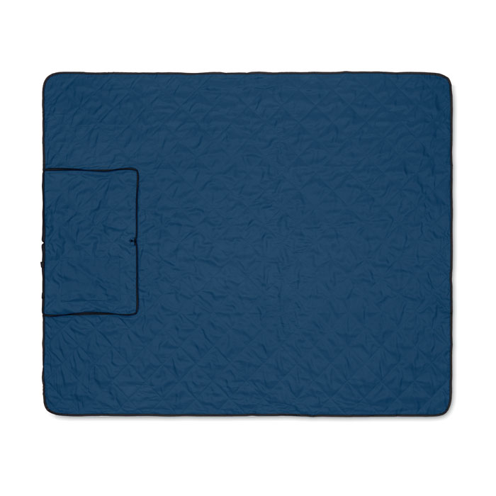 Faltbare, gesteppte Picknickdecke mit kunststoffbeschichtetem PEVA auf der Rückseite. Faltbar zu einer praktischen Tragetasche. Kleine Tasche auf der Frontseite. Verstellbarer Schultergurt.