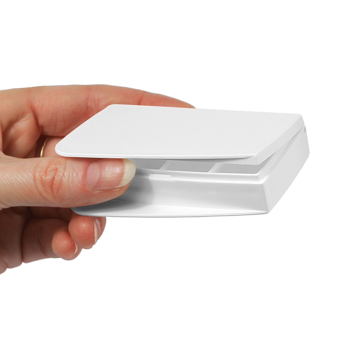 Mit 4 durch Piktogramme gekennzeichneten Fächern, besonders leichtes Öffnen, selbst bei eingeschränkter FingerfertigkeitSuchbegriffe: Pillendose, TablettendoseMaße: 82 x 46 x 17 mmGewicht: 21 gMaterial: PSVeredelung: Siebdruck, DigitaldruckDruckcodes: S/A (4), D/DAVeredelung 1------------Platzierung: oben (16)Druckfläche: 67 x 33 mmDruckart: SiebdruckDruckgruppe, Druckcode: A, S/ADruckfarben max.: 4Veredelung 2------------Platzierung: oben (16)Druckfläche: 80 x 46 mmDruckart: DigitaldruckDruckgruppe, Druckcode: DA, D/DA