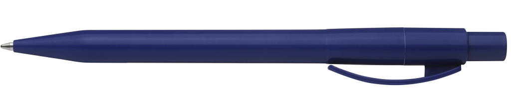 Druckkugelschreiber mit gedeckt glänzendem Gehäuse, Bogenclip und Drücker.