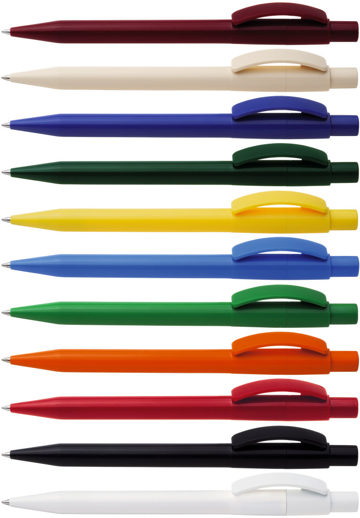 Farbiger Kugelschreiber aus Kunststoff, schwarzschreibend.Maße: ø10×138 mmSchreibgerät-Typ: KugelschreiberSchreibgerät-Mechanik: DruckmechanikSchreibfarbe: SchwarzMinentyp: Normale MineLinienstärke: 1 mmMaterial: KunststoffVeredelungsposition 1: Korpus - rechts vom ClipTechnologie: TampondruckMaximale Farben: 4Durchmesser: 0Druckcode: P0Technologie: TampondruckMaximale Farben: 1Durchmesser: 0Druckcode: P1Technologie: UV LED DruckDurchmesser: 0Druckcode: UVAVeredelungsposition 2: Korpus - links vom ClipTechnologie: TampondruckMaximale Farben: 4Durchmesser: 0Druckcode: P0Technologie: TampondruckMaximale Farben: 1Durchmesser: 0Druckcode: P1Technologie: UV LED DruckDurchmesser: 0Druckcode: UVAVeredelungsposition 3: KlipTechnologie: TampondruckMaximale Farben: 4Durchmesser: 0Druckcode: P0Veredelungsposition 4: Korpus - in Verlängerung vom ClipTechnologie: TampondruckMaximale Farben: 4Durchmesser: 0Druckcode: P0