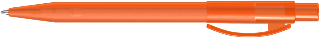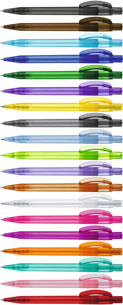 Druckkugelschreiber mit gefrostetem Gehäuse, glänzend transparentem Bogenclip und Drücker.Druckbereich: Auf dem Clip 30mm x 7mm Tampondruck (T), in Clipverlängerung 50mm x 20mm Siebdruck (S), seitlich vom Clip 60mm x 13mm Siebdruck (S), gegenüber vom Clip 60mm x 13mm Siebdruck (S)