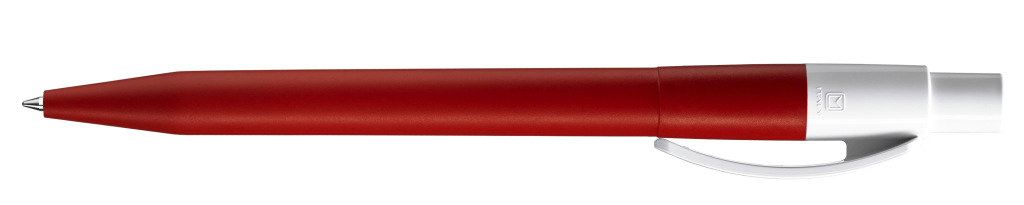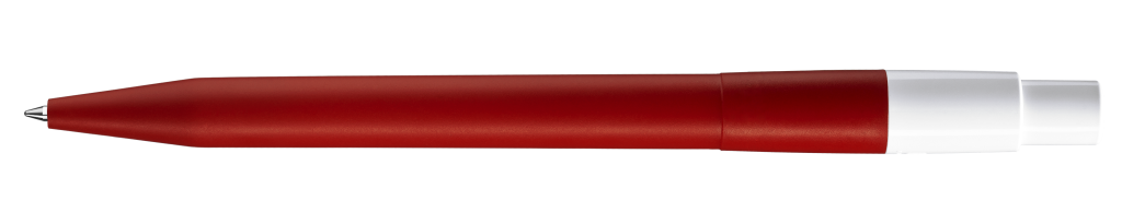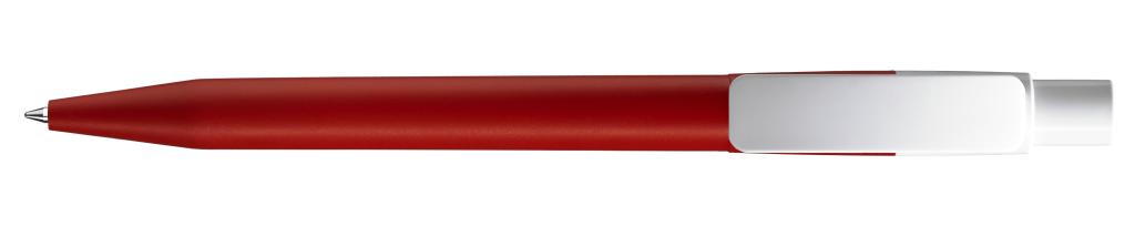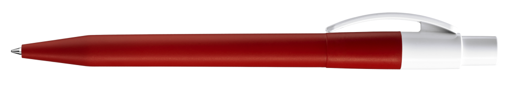 Druckkugelschreiber mit farbig mattem Gehäuse, glänzend weißem Bogenclip und Drücker.Druckbereich: Auf dem Clip 30mm x 7mm Tampondruck (T), in Clipverlängerung 50mm x 20mm Siebdruck (S), gegenüber vom Clip 60mm x 13mm Siebdruck (S), seitlich vom Clip 60mm x 13mm Siebdruck (S)