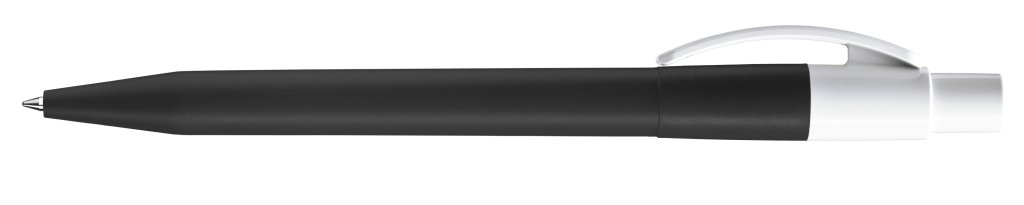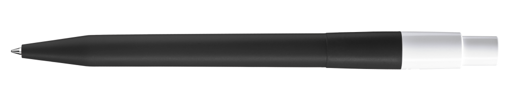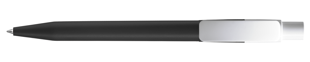 Druckkugelschreiber mit farbig mattem Gehäuse, glänzend weißem Bogenclip und Drücker.Druckbereich: Auf dem Clip 30mm x 7mm Tampondruck (T), in Clipverlängerung 50mm x 20mm Siebdruck (S), gegenüber vom Clip 60mm x 13mm Siebdruck (S), seitlich vom Clip 60mm x 13mm Siebdruck (S)