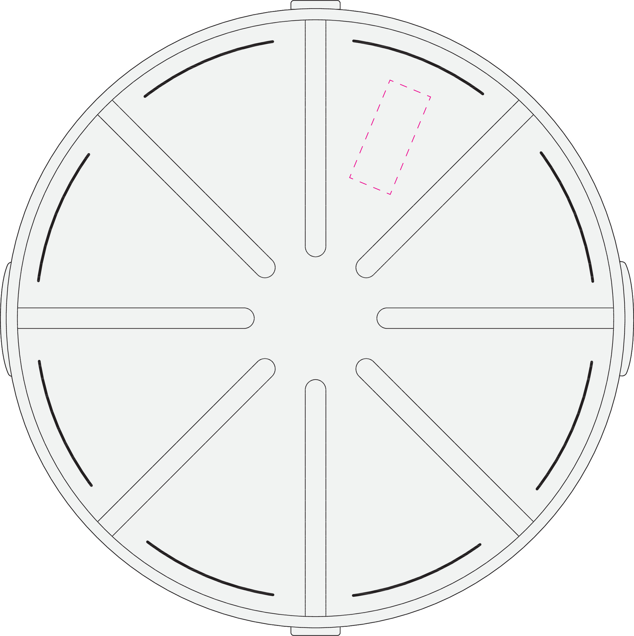 Unsere elegante Pizzabox für Schlemmerfreunde. Dank unserer neuen ToGo-Box ist Schluss mit der unnötigen Müllproduktion. Sie ist die wiederverwendbare Alternative zum Einwegmüll! Zu 100% recycelbar und natürlich BPA-frei. Für die (Industrie-)Spülmaschine geeignet. Perfekt für den privaten Bereich und die Gastronomie.Material: KunststoffMaße: 0 x 0 x 0 x Ø: 358,00 mmGewicht: 387 gDruckmöglichkeitenPosition 1: Mittig auf DeckelDruckart: SiebdruckDruckgruppe: DBMaximale Farben: 1Durchmesser: 50 mmPosition 2: Mittig auf DeckelDruckart: TampondruckDruckgruppe: TAMBMaximale Farben: 5Durchmesser: 40 mmPosition 3: Mittig auf ein Segment außenDruckart: TampondruckDruckgruppe: TAMBMaximale Farben: 5Breite: 60 mmHöhe: 25 mmPosition 4: Innen mittig auf ein SegmentDruckart: CO2 LaserDruckgruppe: CBMaximale Farben: 1Durchmesser: 50 mmPosition 5: Außen mittig auf ein SegmentDruckart: CO2 LaserDruckgruppe: CBMaximale Farben: 1Durchmesser: 50 mmPosition 6: Mittig innenDruckart: CO2 LaserDruckgruppe: CBMaximale Farben: 1Durchmesser: 55 mmPosition 7: Mittig außenDruckart: CO2 LaserDruckgruppe: CBMaximale Farben: 1Durchmesser: 55 mmPosition 8: Außen auf ein SegmentDruckart: CO2 LaserDruckgruppe: CBMaximale Farben: 1Breite: 30 mmHöhe: 70 mmPosition 9: Innen auf ein SegmentDruckart: CO2 LaserDruckgruppe: CBMaximale Farben: 1Breite: 30 mmHöhe: 70 mm