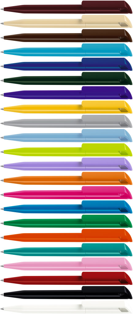 Farbiger Kugelschreiber aus Kunststoff, schwarzschreibend.Maße: ø10×138 mmSchreibgerät-Typ: KugelschreiberSchreibgerät-Mechanik: DruckmechanikSchreibfarbe: SchwarzMinentyp: Normale MineLinienstärke: 1 mmMaterial: KunststoffVeredelungsposition 1: Korpus - rechts vom ClipTechnologie: TampondruckMaximale Farben: 4Durchmesser: 0Druckcode: P0Technologie: TampondruckMaximale Farben: 1Durchmesser: 0Druckcode: P1Technologie: UV LED DruckDurchmesser: 0Druckcode: UVAVeredelungsposition 2: Korpus - links vom ClipTechnologie: TampondruckMaximale Farben: 4Durchmesser: 0Druckcode: P0Technologie: TampondruckMaximale Farben: 1Durchmesser: 0Druckcode: P1Technologie: UV LED DruckDurchmesser: 0Druckcode: UVAVeredelungsposition 3: KlipTechnologie: TampondruckMaximale Farben: 4Durchmesser: 0Druckcode: P0Veredelungsposition 4: Korpus - in Verlängerung vom ClipTechnologie: TampondruckMaximale Farben: 4Durchmesser: 0Druckcode: P0
