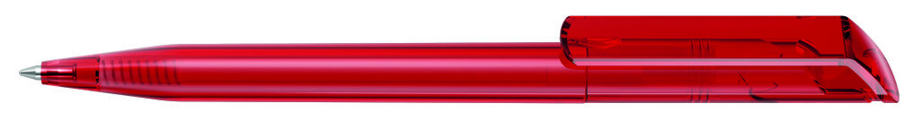 Drehkugelschreiber mit transparent glänzendem Gehäuse.Druckbereich: Auf dem Clip 48mm x 8mm Tampondruck (T), in Clipverlängerung 50mm x 20mm Siebdruck (S), gegenüber vom Clip 50mm x 20mm Siebdruck (S), seitlich vom Clip 50mm x 20mm Siebdruck (S), auf der Kappe/auf dem Oberteil 30mm x 7mm Tampondruck (T), auf dem Clip 48mm x 10mm Digitaldruck (HD), auf dem Clip 48mm x 10mm Reliefdruck (HD)