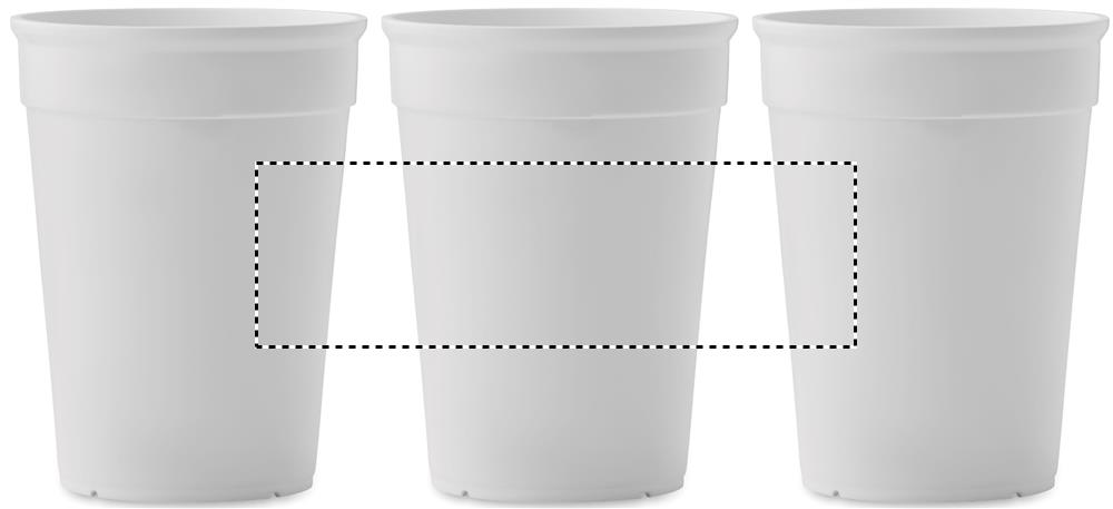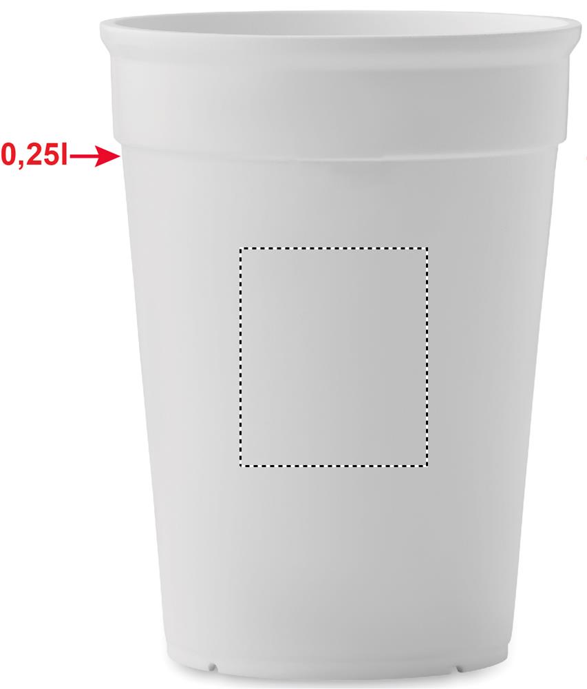 Wiederverwendbarer PP-Becher mit gefrosteter Oberfläche. Ideal für Festivals. Füllmenge: 300 ml.Material: PPMaße: Ø7.5x10.5cmGewicht: 0.015 kgVeredelung: Bestickung, Bedruckung, BeflockungHandling/Farbcodes: Z/03, 06, 26Druckposition: 360Druckmaße: 250 x 84 mmDrucktechniken: RD2Druckposition: ROUNDSCREENDruckmaße: 130 x 40 mmDrucktechniken: RS3Druckposition: FRONT UPPERDruckmaße: 30 x 35 mmDrucktechniken: P4Druckposition: FRONT LOWERDruckmaße: 25 x 35 mmDrucktechniken: P4Druckposition: BACK UPPERDruckmaße: 30 x 35 mmDrucktechniken: P4