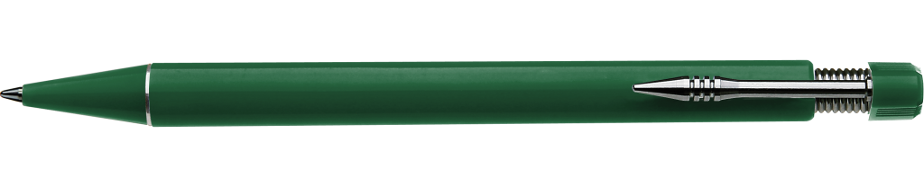 Druckkugelschreiber mit beweglichem Drückerkopf und vernickelter Metallfeder. Vernickelter Metallnadelclip und Zierring.Druckbereich: In Clipverlängerung 50mm x 16mm Siebdruck (S), gegenüber vom Clip 65mm x 13mm Siebdruck (S), seitlich vom Clip 65mm x 13mm Siebdruck (S)