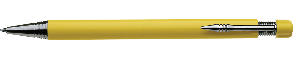 Druckkugelschreiber mit beweglichem Drückerkopf und vernickelter Metallfeder. Vernickelter Metallnadelclip und Zierring.Druckbereich: In Clipverlängerung 50mm x 16mm Siebdruck (S), gegenüber vom Clip 65mm x 13mm Siebdruck (S), seitlich vom Clip 65mm x 13mm Siebdruck (S)