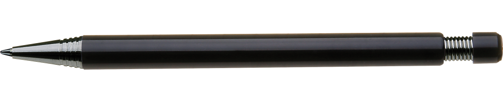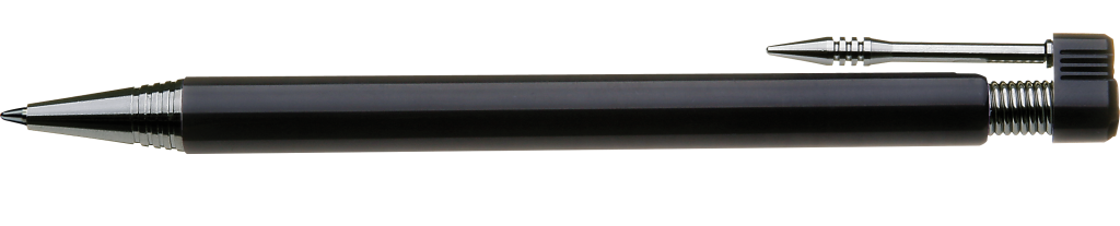 Druckkugelschreiber mit beweglichem Drückerkopf auf vernickelter Metallfeder. Vernickelter Metallnadelclip und schwere Metallspitze.