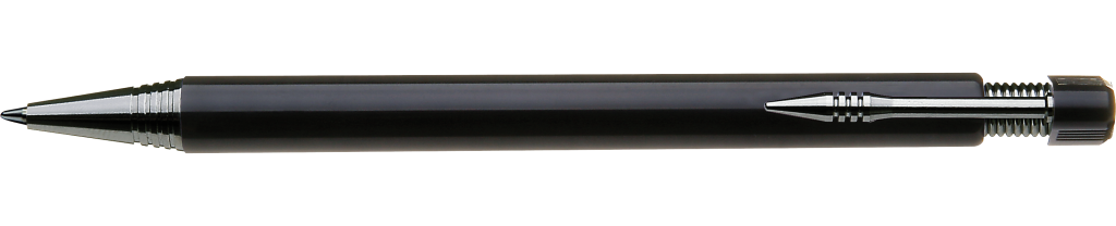 Druckkugelschreiber mit beweglichem Drückerkopf und vernickelter Metallfeder. Vernickelter Metallnadelclip und Zierring.Druckbereich: In Clipverlängerung 50mm x 16mm Siebdruck (S), gegenüber vom Clip 65mm x 13mm Siebdruck (S), seitlich vom Clip 65mm x 13mm Siebdruck (S)
