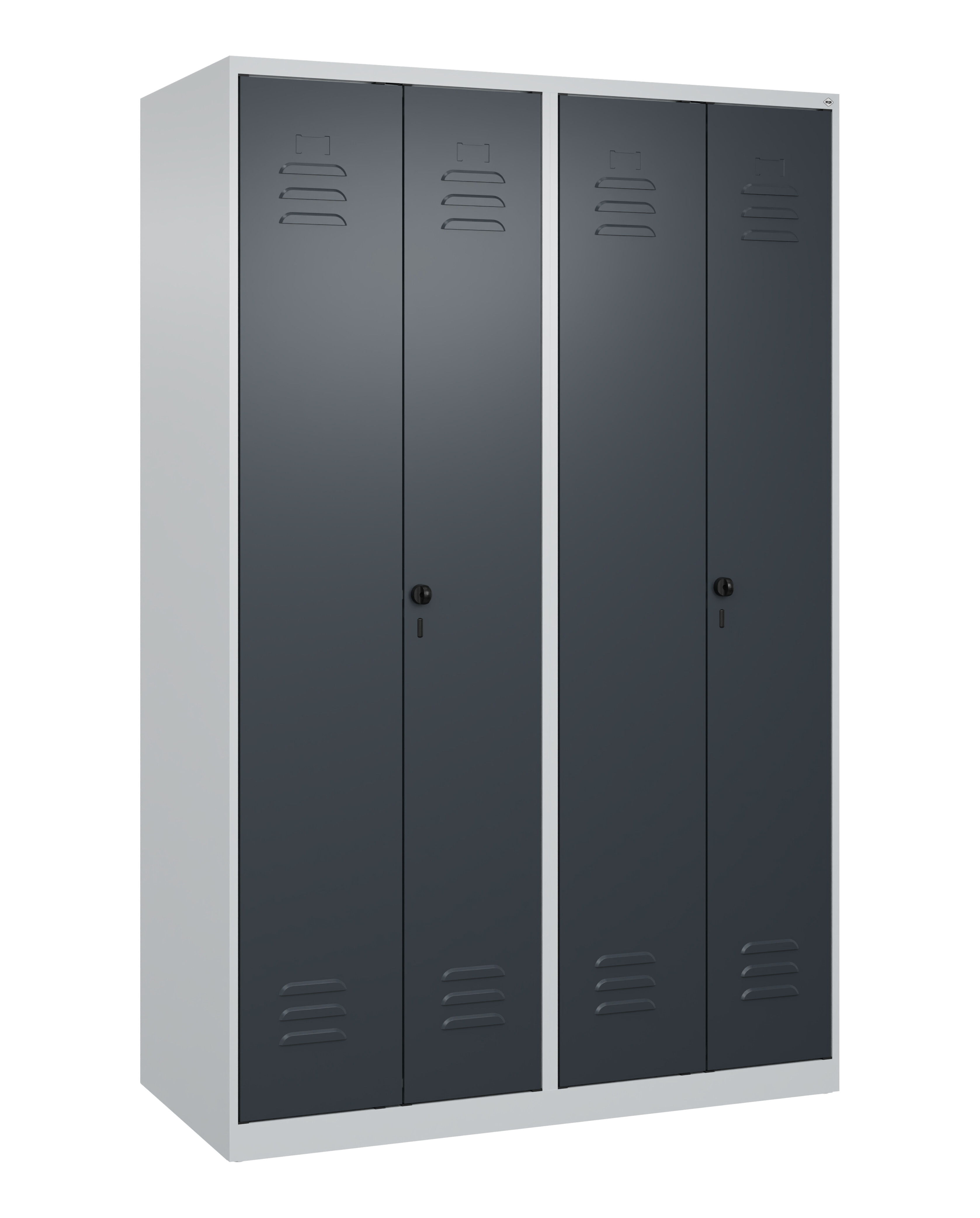 PSA Doppel-Spind Classic Plus, 4 Abteile, 1850x1200x500mm RAL 7016 Anthrazitgrau RAL 7035 Lichtgrau