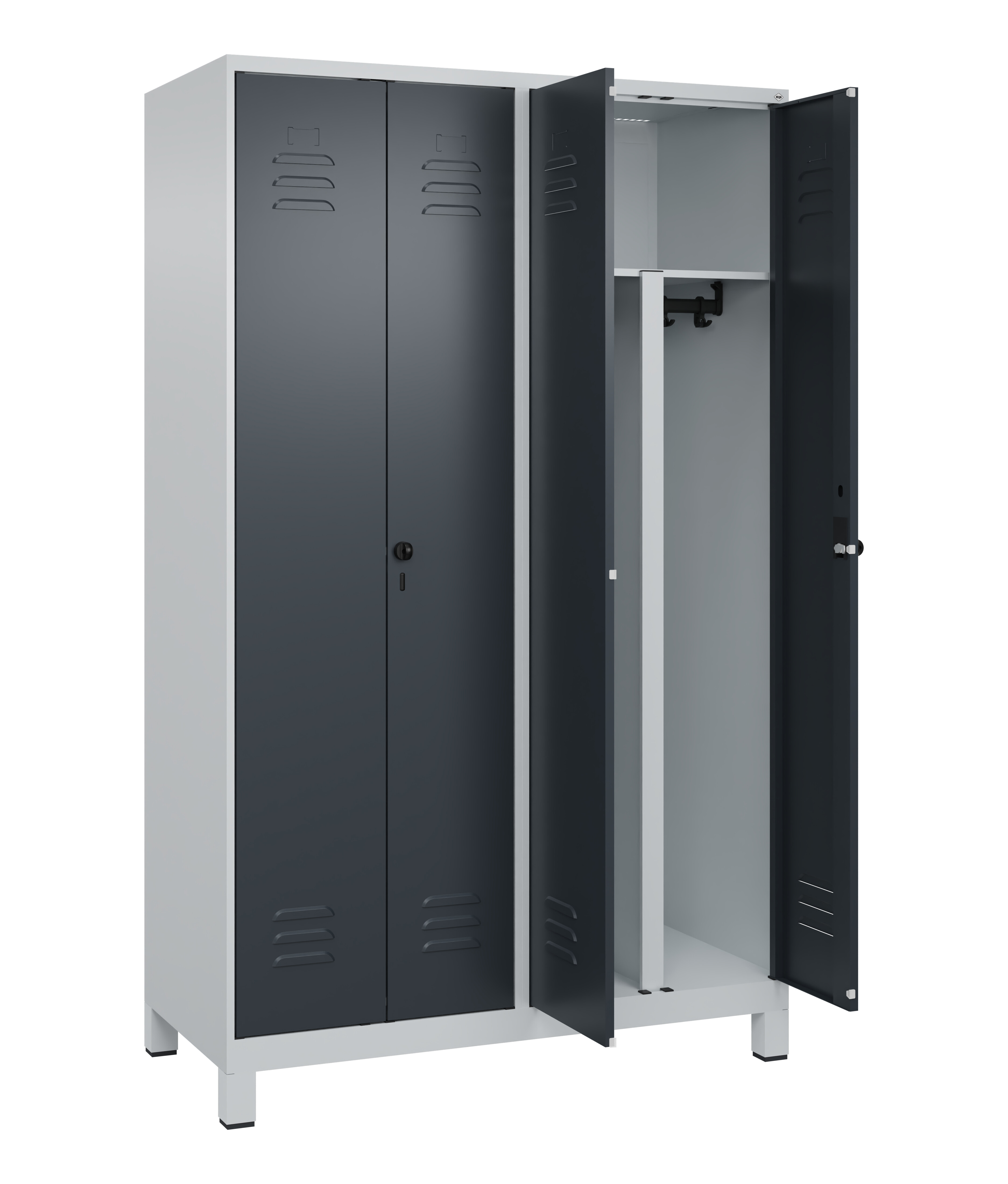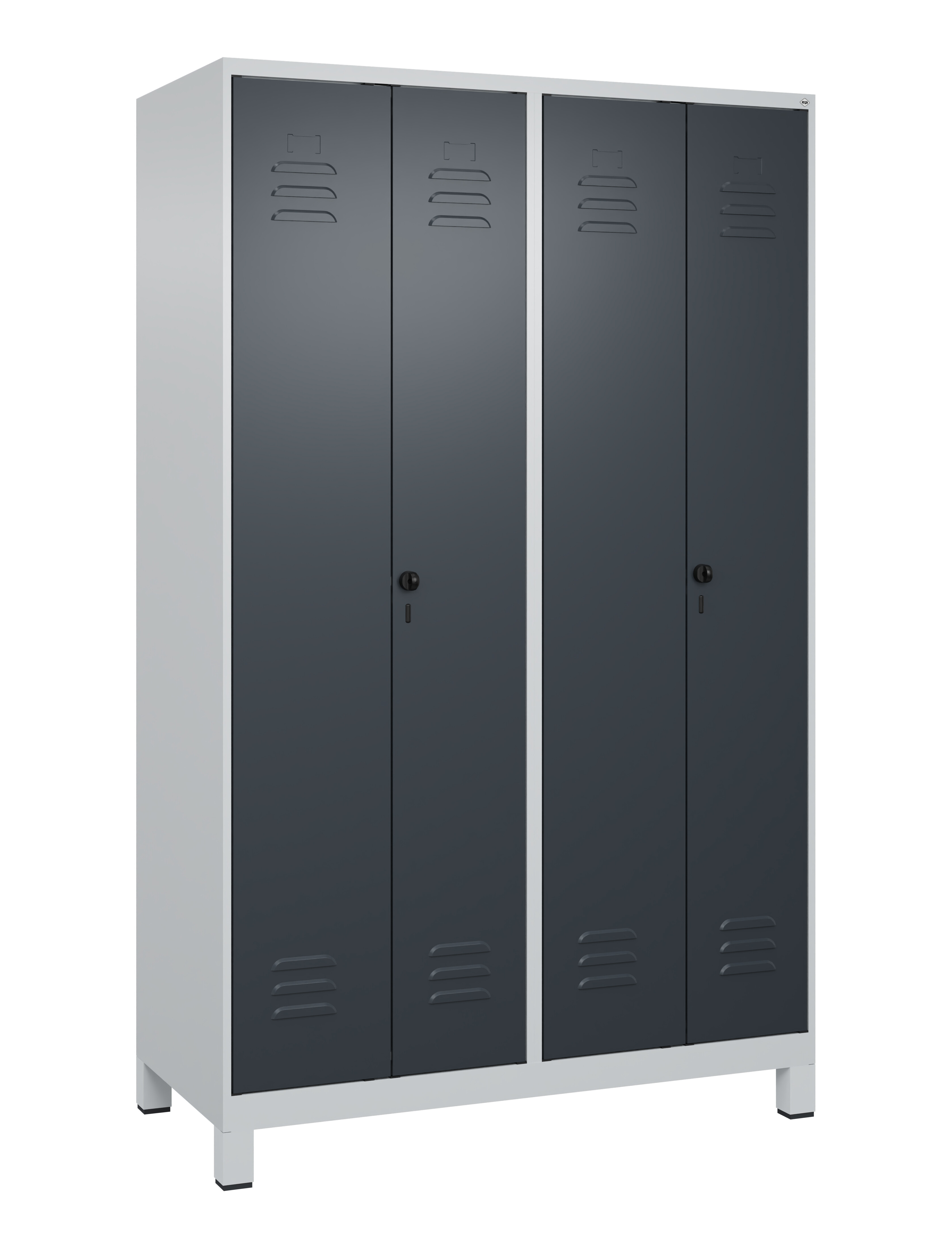 PSA Doppel-Spind Classic Plus, Füße, 4 Abteile, 1950x1200x500mm RAL 7016 Anthrazitgrau RAL 7035 Lichtgrau
