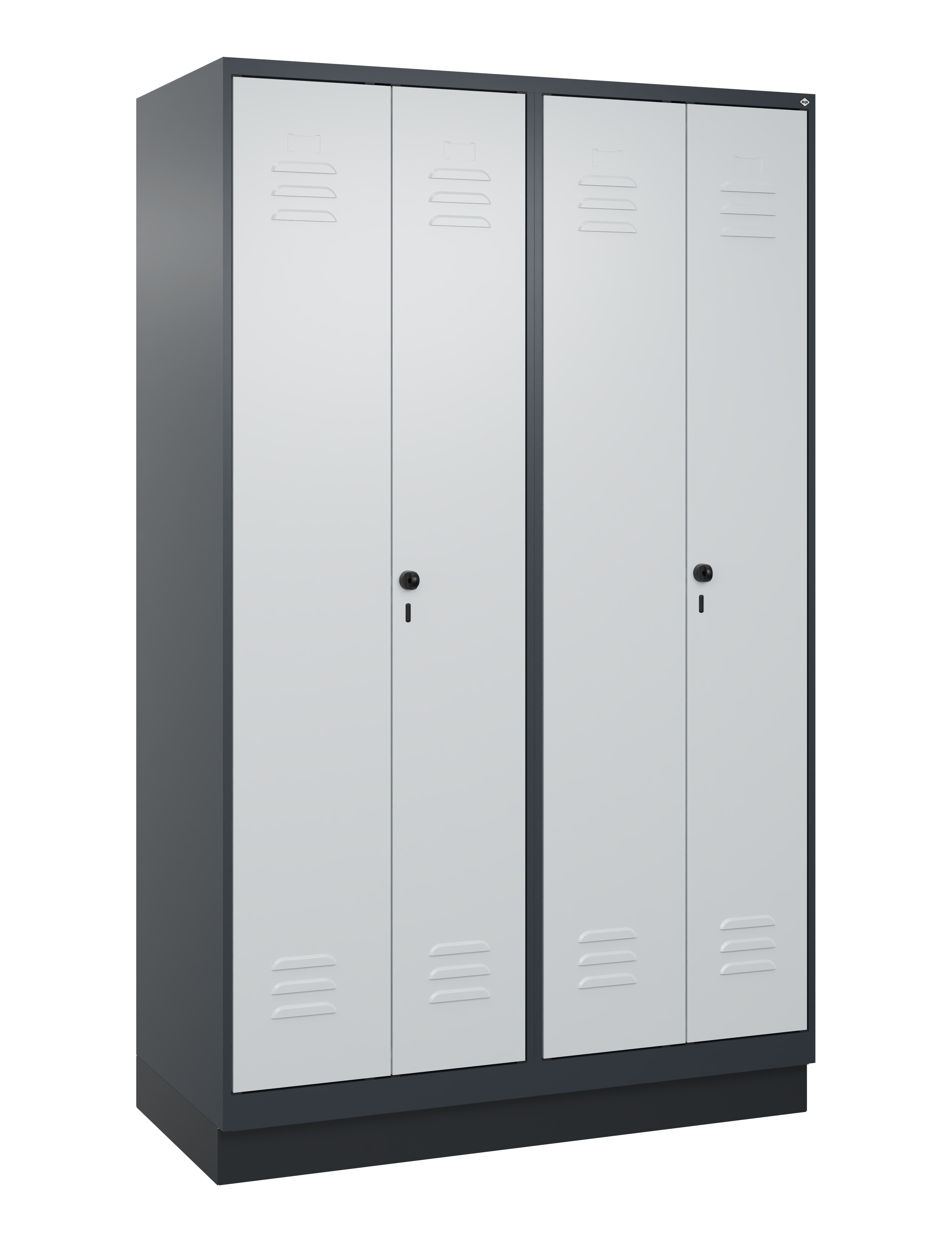 PSA Doppel-Spind Classic Plus, Sockel, 4 Abteile, 1950x1200x500mm RAL 7035 Lichtgrau RAL 7016 Anthrazitgrau