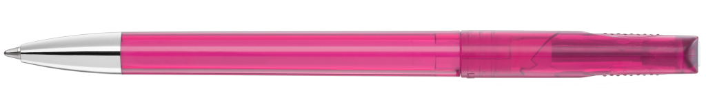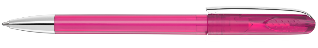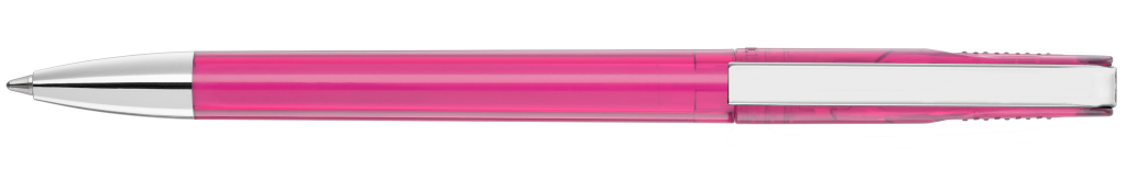 Drehkugelschreiber mit glänzend transparentem Gehäuse, schwerer Metallspitze und Metallclip. Griffnoppen in der Kappe unterstützen den komfortablen Drehmachanismus.Druckbereich: Auf dem Clip 35mm x 3mm Lasergravur (L), in Clipverlängerung 45mm x 20mm Siebdruck (S), gegenüber vom Clip 45mm x 20mm Siebdruck (S), seitlich vom Clip 45mm x 20mm Siebdruck (S), auf dem Clip 35mm x 3mm Einzelnamensgravur (EL)