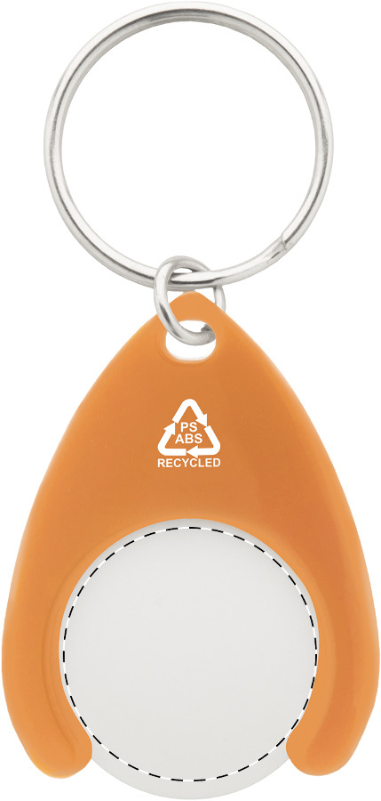 Schlüsselanhänger aus recyceltem ABS und recyceltem PS Kunststoff mit EKW-Chip und Metall-Schlüsselring. Chip-Größe: ø24×2 mm.