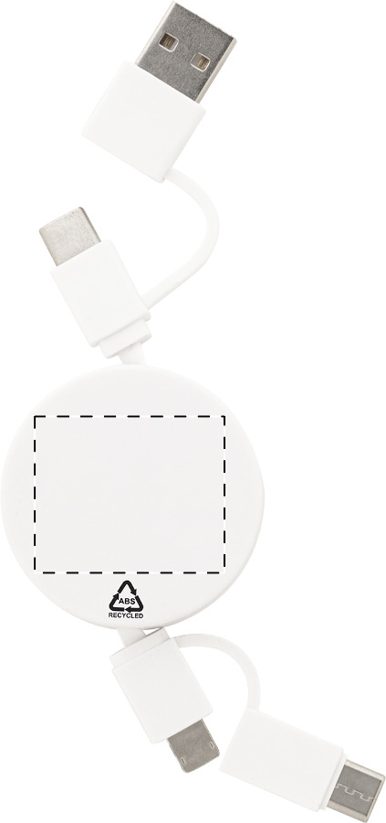 Teleskop-USB-Ladekabel aus recyceltem ABS mit Micro-USB-, USB-C- und Lightning-Anschlüssen. Mit USB- und USB-C-Eingängen.