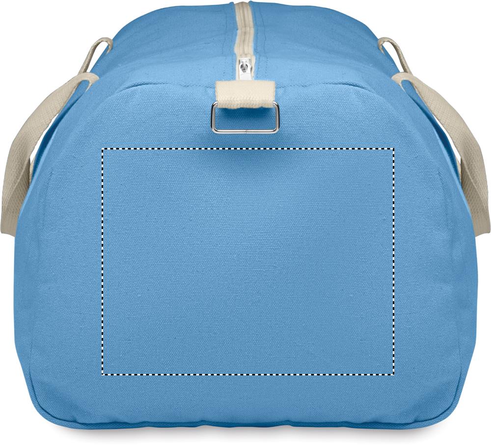 Sport- und Reisetasche mit Reißverschluss-Fronttasche. RPET 190T Polyester. Volumen: 20 l.Material: RPETMaße: 48x23cmGewicht: 0.08 kgVeredelung: Bestickung, Bedruckung, BeflockungHandling/Farbcodes: Z/03, 04, 15, 37, 60Druckposition: POCKETDruckmaße: 130 x 70 mmDrucktechniken: TD1, TR, S4, T1Druckposition: FRONT UPPERDruckmaße: 150 x 70 mmDrucktechniken: S4, T1, TD1, TRDruckposition: BACKDruckmaße: 150 x 120 mmDrucktechniken: S4, T1, TD1, TRDruckposition: RIGHTDruckmaße: 120 x 120 mmDrucktechniken: S4, T1, TD1, TRDruckposition: LEFTDruckmaße: 120 x 120 mmDrucktechniken: S4, T1, TD1, TR