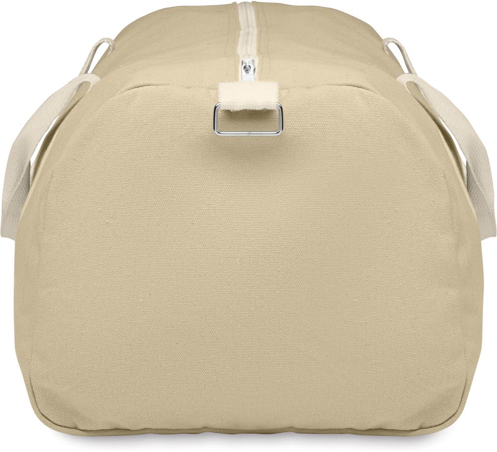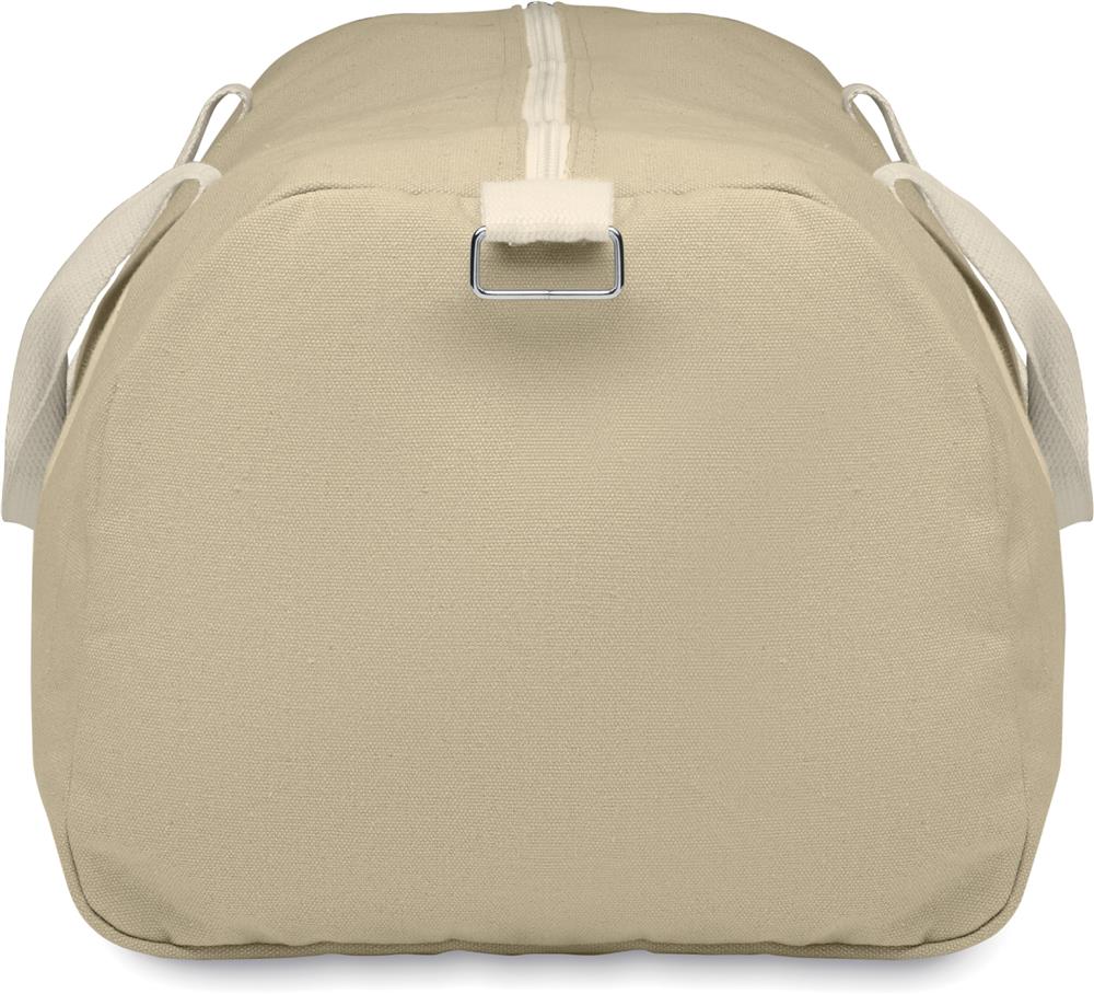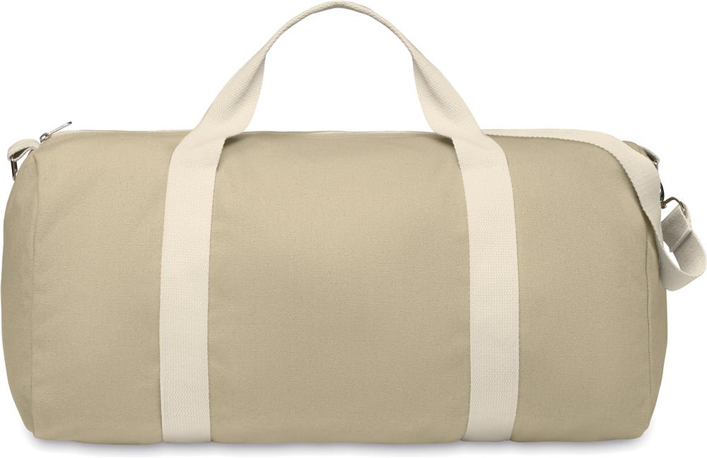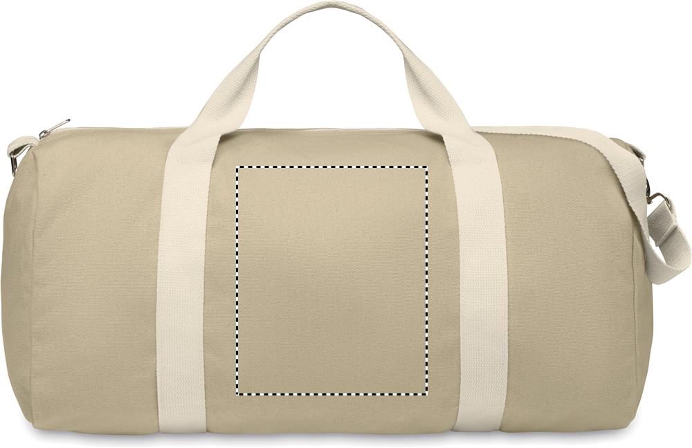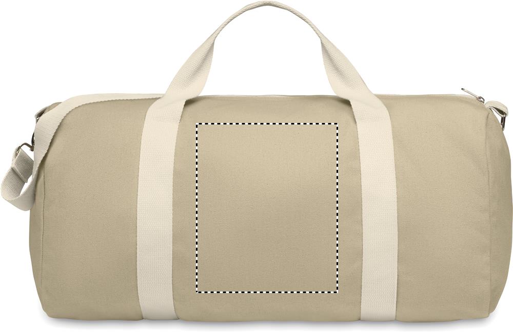 Große Tasche aus recycelten Materialien (60% recycelte Baumwolle, 40% recycelter Polyester) in 320 g/m². Tragegriffe aus natürlichem Baumwollgewebe. Verstellbarer und abnehmbarer Schultergurt.