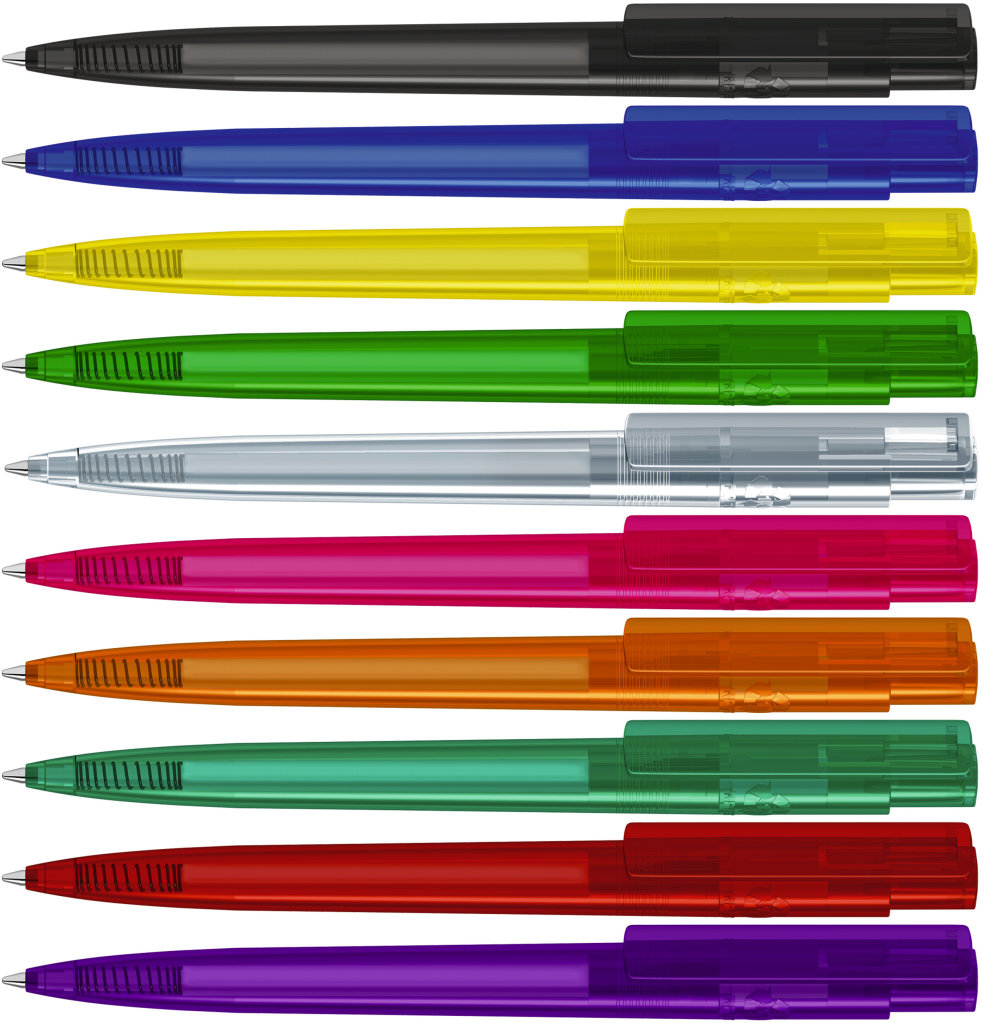Farbiger Kugelschreiber aus Kunststoff, schwarzschreibend.Maße: ø10×138 mmSchreibgerät-Typ: KugelschreiberSchreibgerät-Mechanik: DruckmechanikSchreibfarbe: SchwarzMinentyp: Normale MineLinienstärke: 1 mmMaterial: KunststoffVeredelungsposition 1: Korpus - rechts vom ClipTechnologie: TampondruckMaximale Farben: 4Durchmesser: 0Druckcode: P0Technologie: TampondruckMaximale Farben: 1Durchmesser: 0Druckcode: P1Technologie: UV LED DruckDurchmesser: 0Druckcode: UVAVeredelungsposition 2: Korpus - links vom ClipTechnologie: TampondruckMaximale Farben: 4Durchmesser: 0Druckcode: P0Technologie: TampondruckMaximale Farben: 1Durchmesser: 0Druckcode: P1Technologie: UV LED DruckDurchmesser: 0Druckcode: UVAVeredelungsposition 3: KlipTechnologie: TampondruckMaximale Farben: 4Durchmesser: 0Druckcode: P0Veredelungsposition 4: Korpus - in Verlängerung vom ClipTechnologie: TampondruckMaximale Farben: 4Durchmesser: 0Druckcode: P0