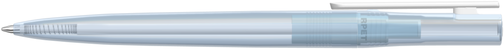Drehkugelschreiber aus recyceltem PET-Material mit transparent glänzendem Gehäuse und gedeckt glänzendem Clip. Das aus recycelten PET-Flaschen in Europa hergestellte rPET-Material eignet sich für einen langlebigen und nachhaltigen Werbeeinsatz. Dank der europäischen und klimaneutralen Produktion leistet der uma RECYCLED PET PEN switch einen zusätzlichen nachhaltigen Beitrag zur Schonung der Umwelt.Druckbereich: In Clipverlängerung 55mm x 20mm Siebdruck (S), gegenüber vom Clip 55mm x 13mm Siebdruck (S), auf dem Clip 35mm x 6mm Tampondruck (T), seitlich vom Clip 55mm x 13mm Siebdruck (S)