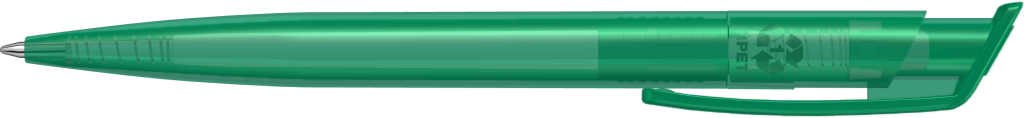 Druckkugelschreiber aus recyceltem PET-Material mit transparent glänzendem Gehäuse und gedecktem Stopfen. Das aus recycelten PET-Flaschen in Europa hergestellte rPET-Material eignet sich für einen langlebigen und nachhaltigen Werbeeinsatz. Dank der europäischen und klimaneutralen Produktion leistet der uma RECYCLED PET PEN einen zusätzlichen nachhaltigen Beitrag zur Schonung der Umwelt.Druckbereich: In Clipverlängerung 40mm x 20mm Siebdruck (S), seitlich vom Clip 55mm x 13mm Siebdruck (S), gegenüber vom Clip 55mm x 13mm Siebdruck (S), auf dem Clip 35mm x 8mm Tampondruck (T), auf dem Stopfen 6mm x 6mm Tampondruck Sonderformat (TT)