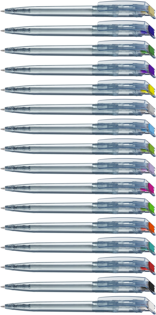 Farbiger Kugelschreiber aus Kunststoff, schwarzschreibend.Maße: ø10×138 mmSchreibgerät-Typ: KugelschreiberSchreibgerät-Mechanik: DruckmechanikSchreibfarbe: SchwarzMinentyp: Normale MineLinienstärke: 1 mmMaterial: KunststoffVeredelungsposition 1: Korpus - rechts vom ClipTechnologie: TampondruckMaximale Farben: 4Durchmesser: 0Druckcode: P0Technologie: TampondruckMaximale Farben: 1Durchmesser: 0Druckcode: P1Technologie: UV LED DruckDurchmesser: 0Druckcode: UVAVeredelungsposition 2: Korpus - links vom ClipTechnologie: TampondruckMaximale Farben: 4Durchmesser: 0Druckcode: P0Technologie: TampondruckMaximale Farben: 1Durchmesser: 0Druckcode: P1Technologie: UV LED DruckDurchmesser: 0Druckcode: UVAVeredelungsposition 3: KlipTechnologie: TampondruckMaximale Farben: 4Durchmesser: 0Druckcode: P0Veredelungsposition 4: Korpus - in Verlängerung vom ClipTechnologie: TampondruckMaximale Farben: 4Durchmesser: 0Druckcode: P0