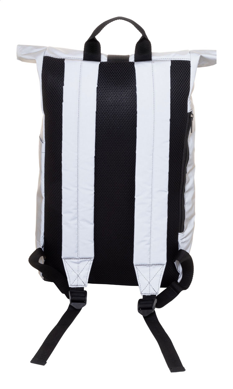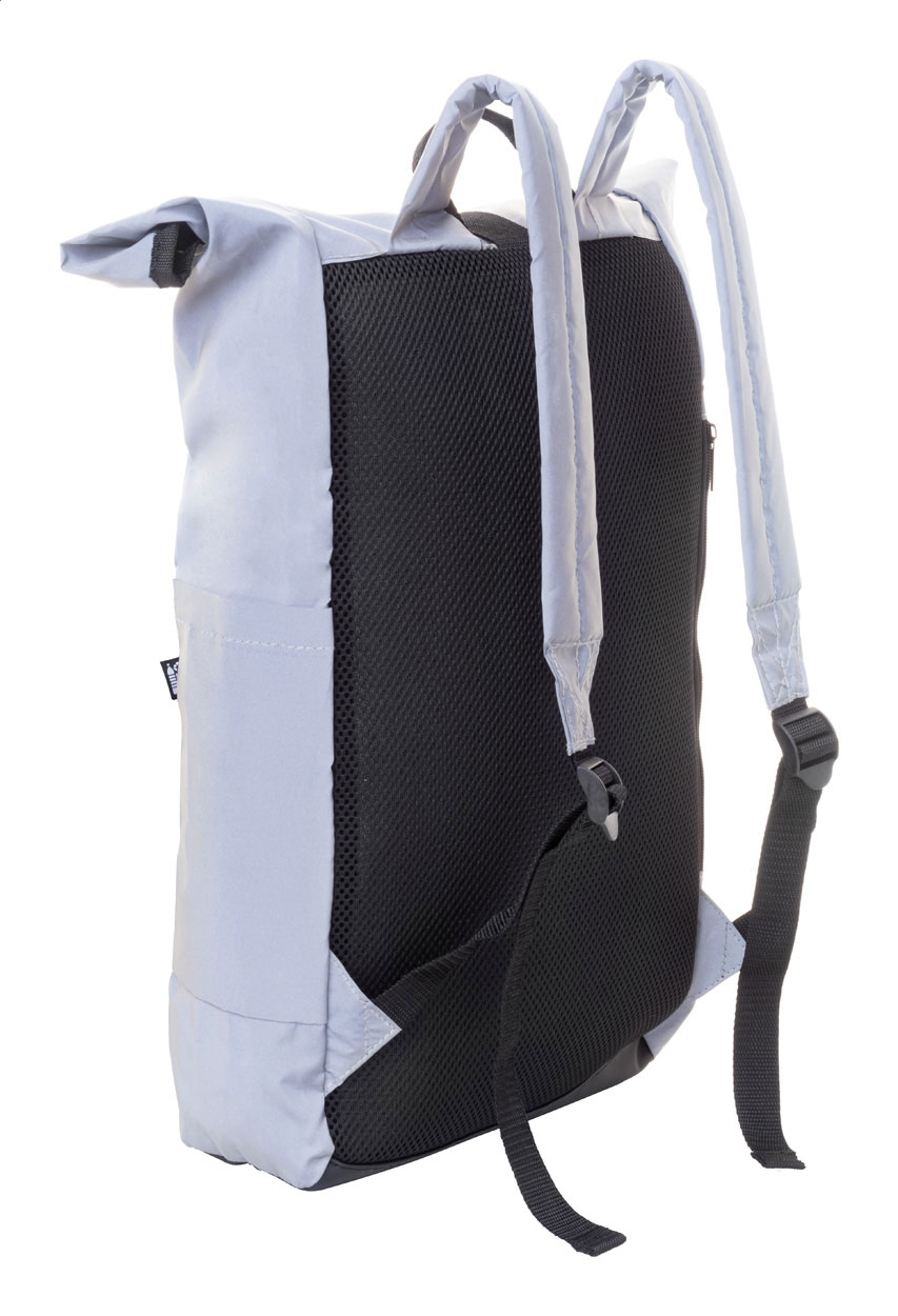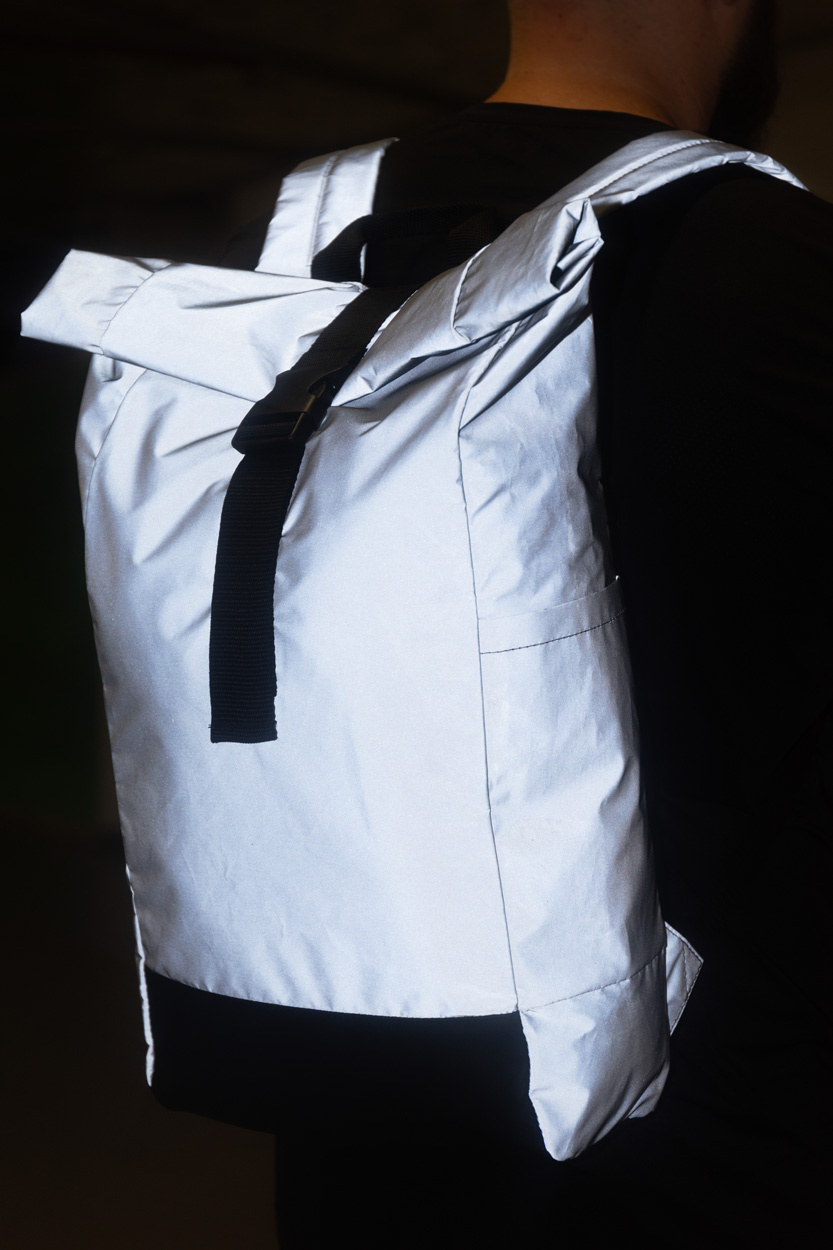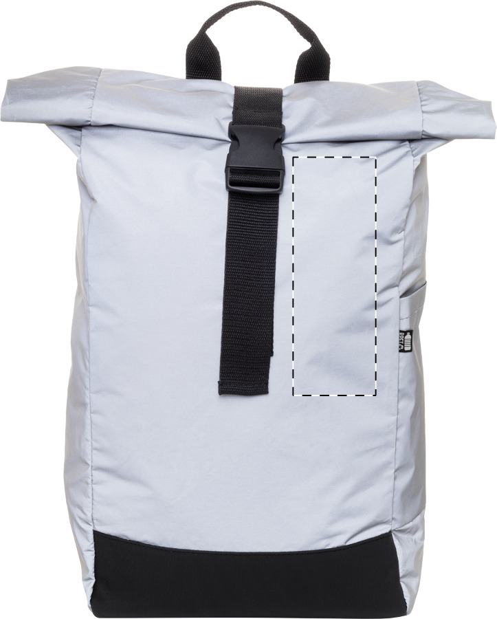 Reflektierender Rolltop-Rucksack aus RPET-Polyester mit Hauptfach mit Schnallenverschluss, versteckter Reißverschlusstasche, gepolstertem Laptopfach (15"), Seitentasche, gepolstertem Rücken und Schultergurten. Mit RPET-Label. Nur für Werbezwecke geeignet, das Produkt erfüllt nicht die Voraussetzungen für persönliche Schutzausrüstung.