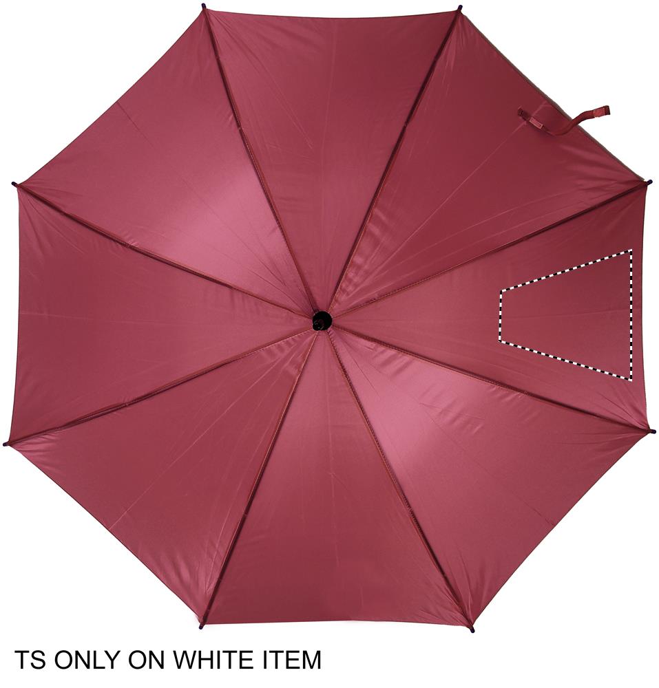 23 inch Regenschirm aus 190T Polyester. Stock, Spitzen und Krone aus Holz. Stangen aus schwarz überzogenem Metall. Gebogener Griff aus Holz in Natur-Finish. Automatische Öffnung, manuelle Schließung.Material: HolzMaße: Ø103x89.5cmGewicht: 0.375 kgVeredelung: Bestickung, Bedruckung, BeflockungHandling/Farbcodes: B/02, 03, 04, 05, 06, 07, 09, 10, 37Druckposition: SEGMENT1Druckmaße: 210 x 210 mmDrucktechniken: TS3, TR, S7, T1, TD1Druckposition: SEGMENT2Druckmaße: 210 x 210 mmDrucktechniken: S7, T1, TD1, TR, TS3Druckposition: SEGMENT3Druckmaße: 210 x 210 mmDrucktechniken: TS3, TR, S7, T1, TD1Druckposition: SEGMENT4Druckmaße: 210 x 210 mmDrucktechniken: S7, T1, TD1, TR, TS3Druckposition: STRAPDruckmaße: 100 x 10 mmDrucktechniken: TR, S6, T1, TD1
