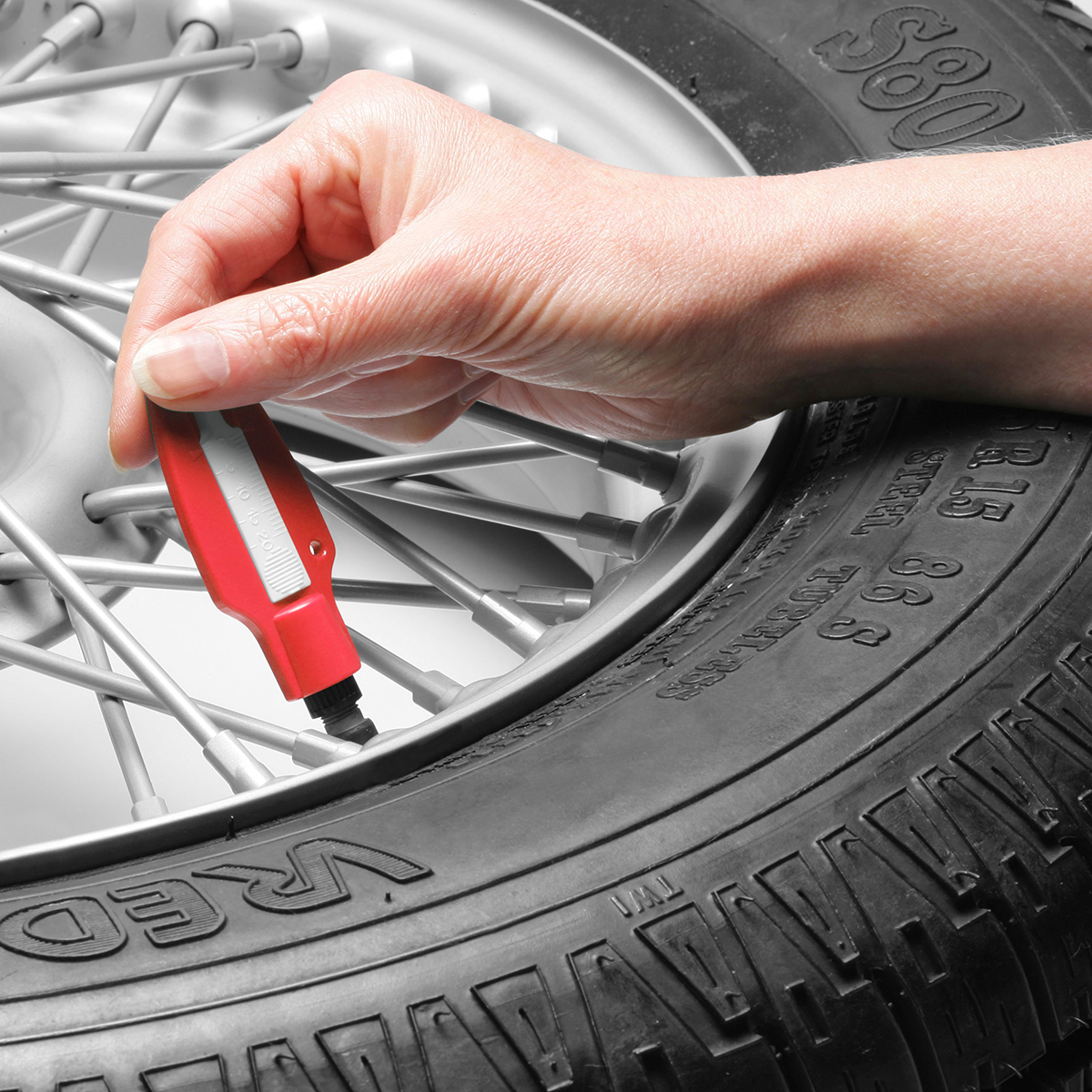 Reifenprofiltiefenmesser mit Ventilkappendreher rot / weiß
