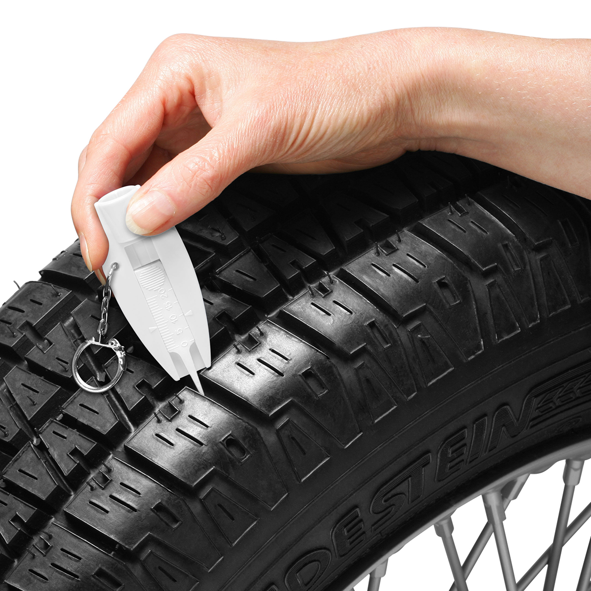 Suchbegriffe: Reifenprofiltiefenmesser, Ventilkappendreher, Messer, Schlüsselanhänger