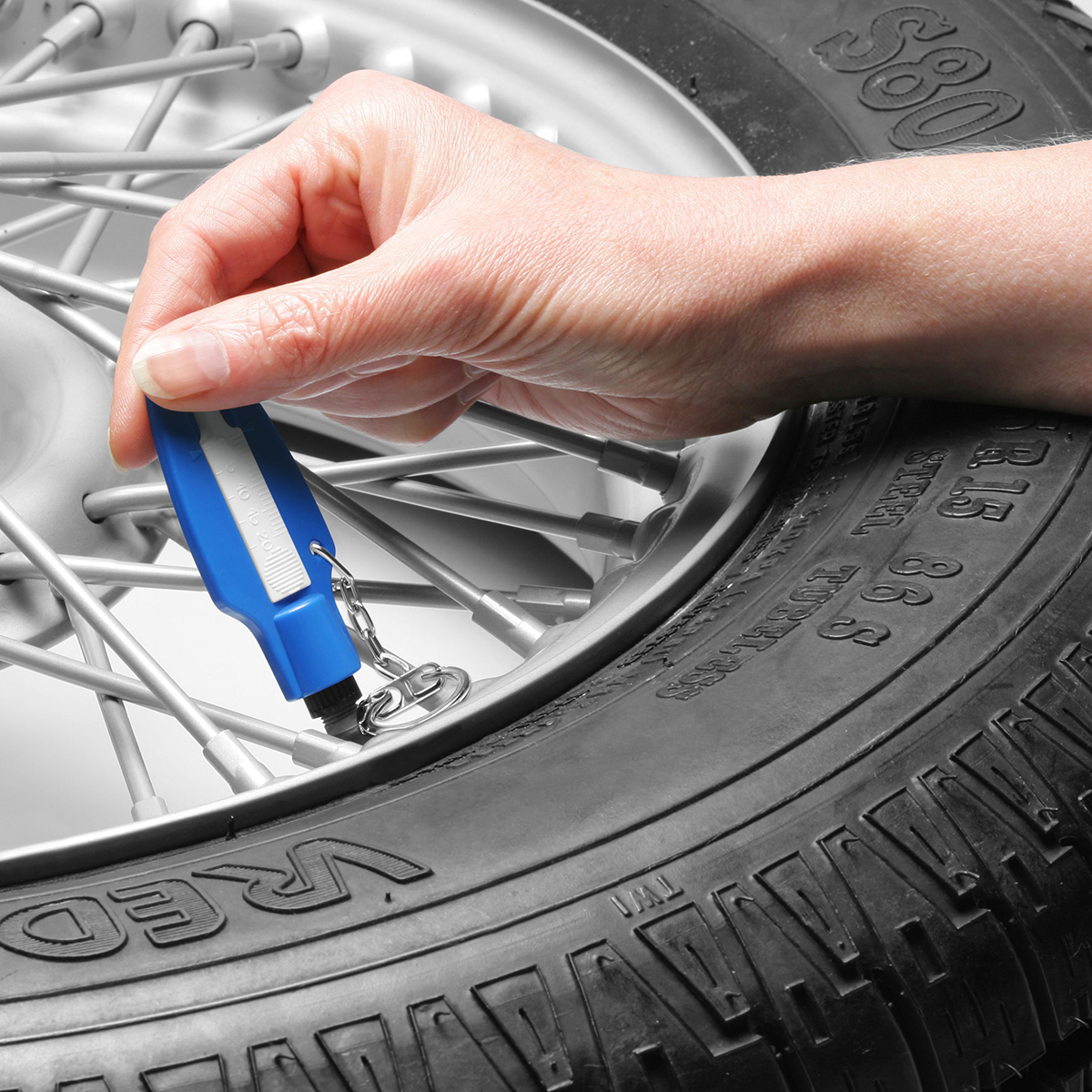 Produktinformationen "Reifenprofiltiefenmesser mit Ventilkappendreher"