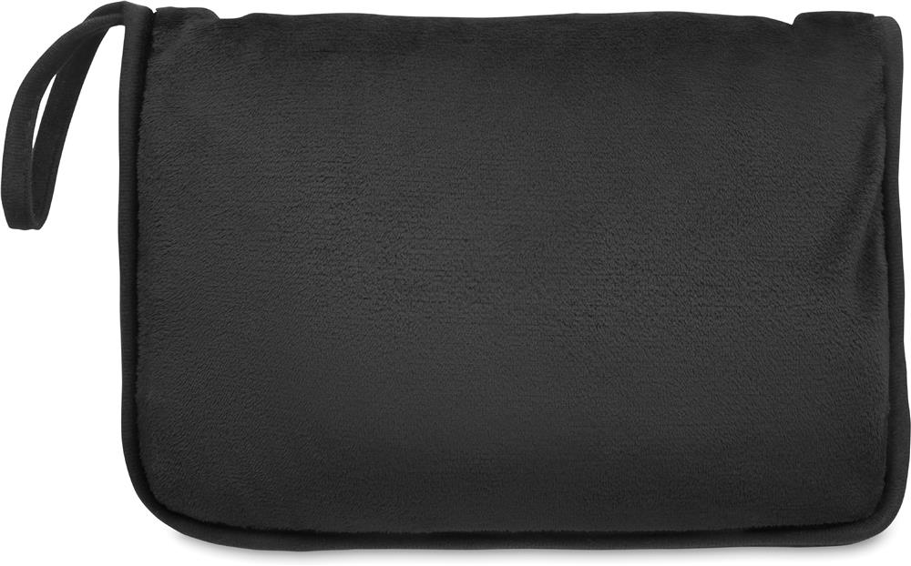 Reisedecke 220 g/m² Flanell. Die Decke kann in die Hülle gefaltet werden und dient dann als Kissen. Inkl. Trageschlaufe und Trolley-Halterung aus 600D RPET-Polyester.