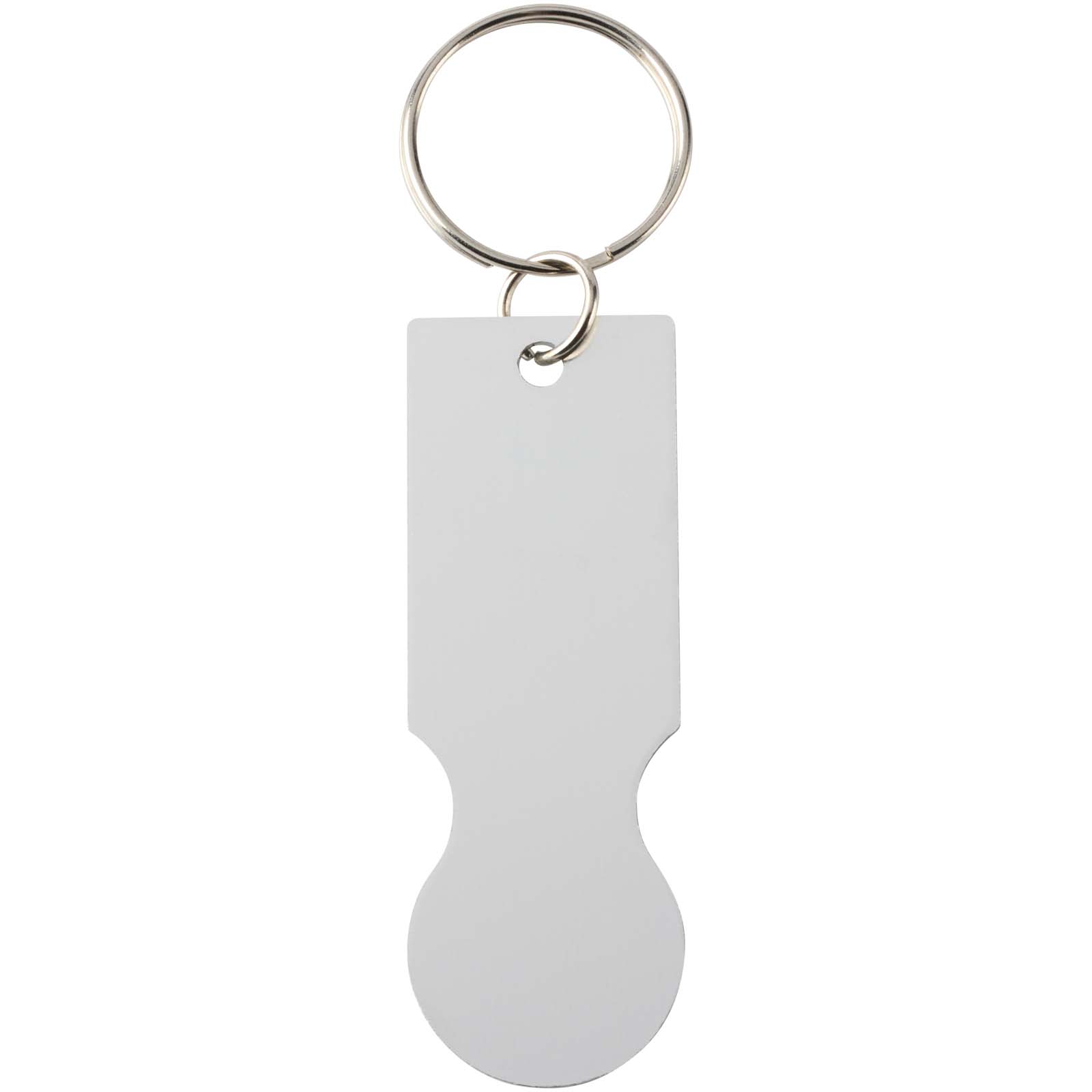 Der Rhea Metallschlüsselanhänger mit Einkaufswagen-Münze passt in die meisten Einkaufswagen und ermöglicht das Öffnen ohne Münzen oder Chips.