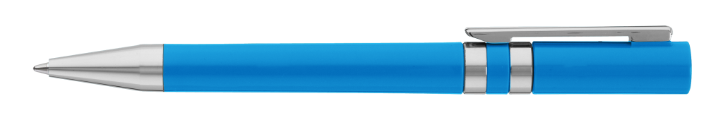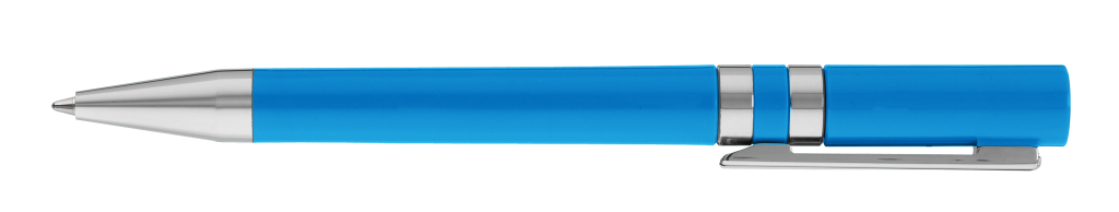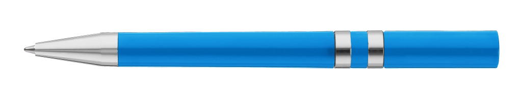 Drehkugelschreiber mit gedeckt glänzendem Gehäuse. Eingelassene Ringe, Stopfen im Oberteil, Metallclip und Spitze in silber glänzend.Druckbereich: In Clipverlängerung 45mm x 20mm Siebdruck (S), gegenüber vom Clip 45mm x 20mm Siebdruck (S), seitlich vom Clip 45mm x 20mm Siebdruck (S), auf der Kappe/auf dem Oberteil 25mm x 7mm Tampondruck (T)