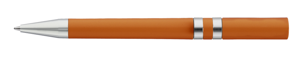 Drehkugelschreiber mit gedeckt glänzendem Gehäuse. Eingelassene Ringe, Stopfen im Oberteil, Metallclip und Spitze in silber glänzend.Druckbereich: In Clipverlängerung 45mm x 20mm Siebdruck (S), gegenüber vom Clip 45mm x 20mm Siebdruck (S), seitlich vom Clip 45mm x 20mm Siebdruck (S), auf der Kappe/auf dem Oberteil 25mm x 7mm Tampondruck (T)
