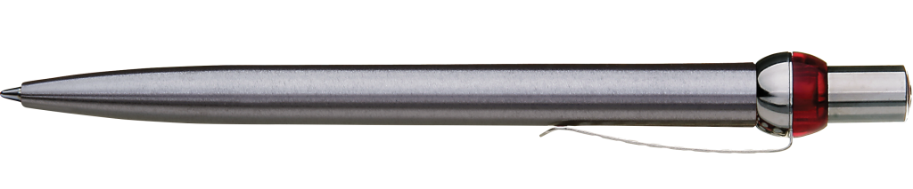 Metall-Druckkugelschreiber mit verchromtem und lackiertem Schaft. Obere Halbkugel und Stopfen farbig transparent. Gelochter Metallclip, Drücker und untere Halbkugel verchromt.