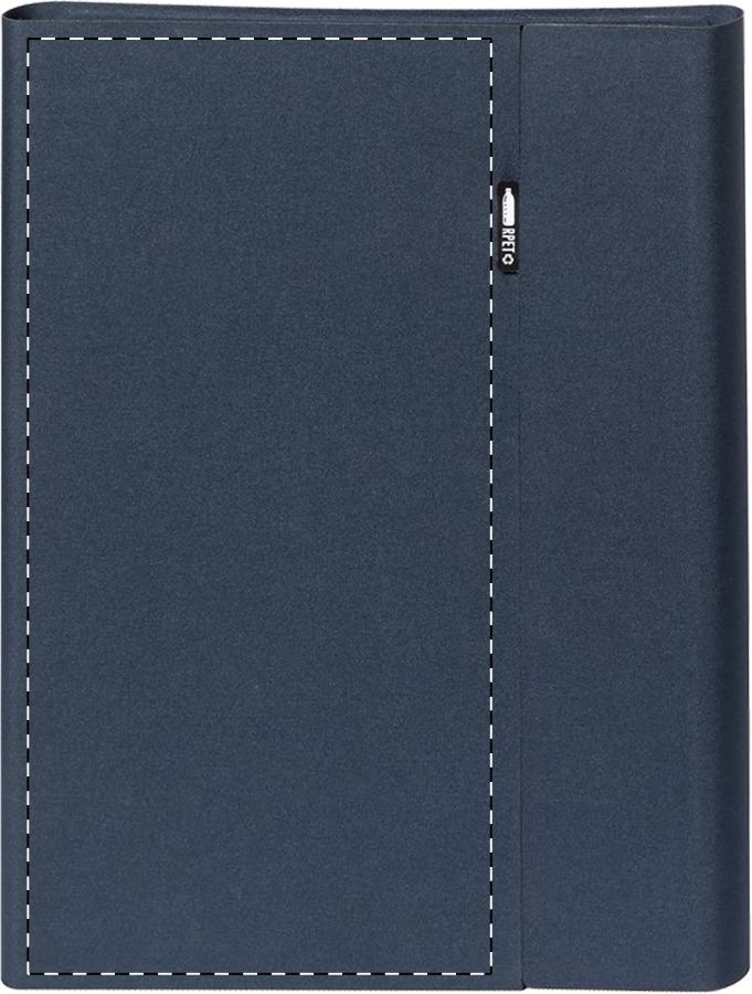 Dokumentenmappe aus 600D RPET-Polyester mit Magnetverschluss, faltbarem Handyhalter und Notizblock mit 20 Seiten (liniert). Mit RPET-Label. Größe A4.