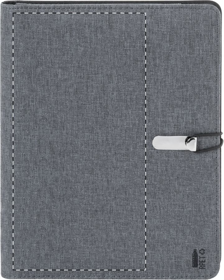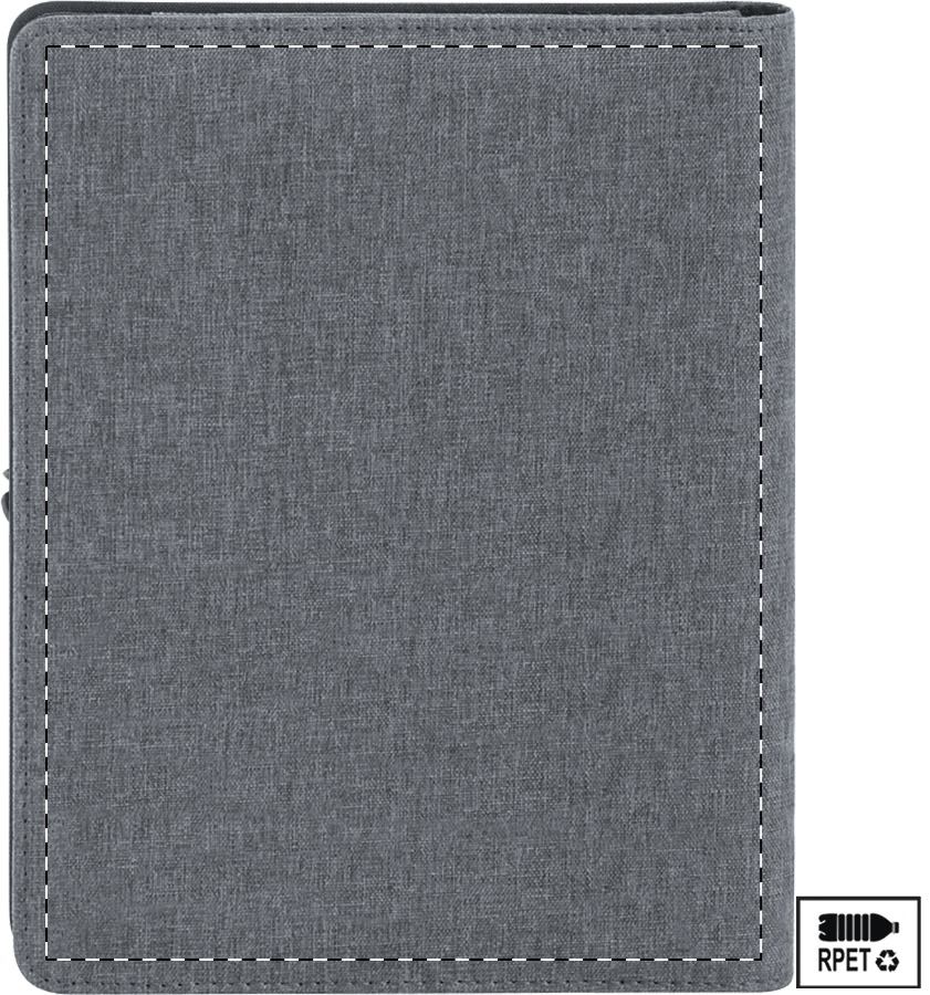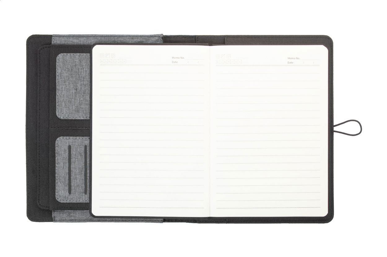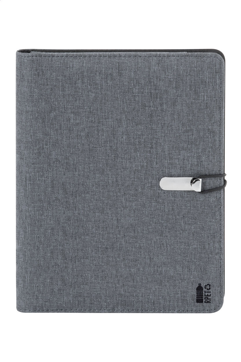 Dokumentenmappe im A5-Format aus 300D RPET-Polyester mit Notizblock mit 64 linierten Blättern und mehreren Organizer-Innentaschen.