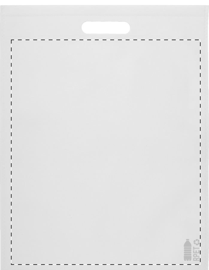 Einkaufstasche mit gestanzten Henkeln aus RPET non-woven, 70 g/m². Mit RPET-Label.