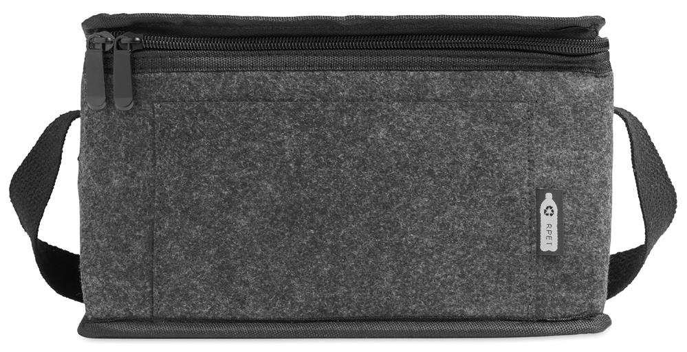 Kühltasche aus RPET-Filz mit Fronttasche. 1mm RPET-Filz- und isolierende 3 mm Aluminiumfolie. Füllmenge: 5L.
