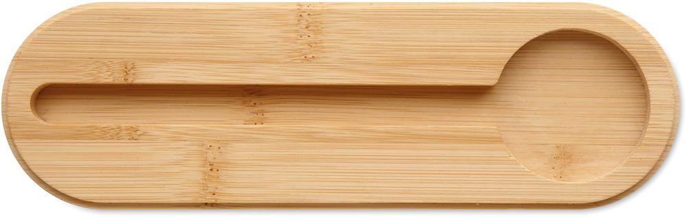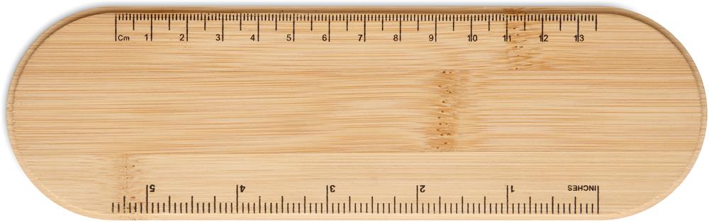 Federmäppchen aus RPET-Filz mit Deckel aus Bambus. Integrierter Handyhalter. Lineal: 5,5 Zoll und 13,5 cm. Elastisches Verschlussband.