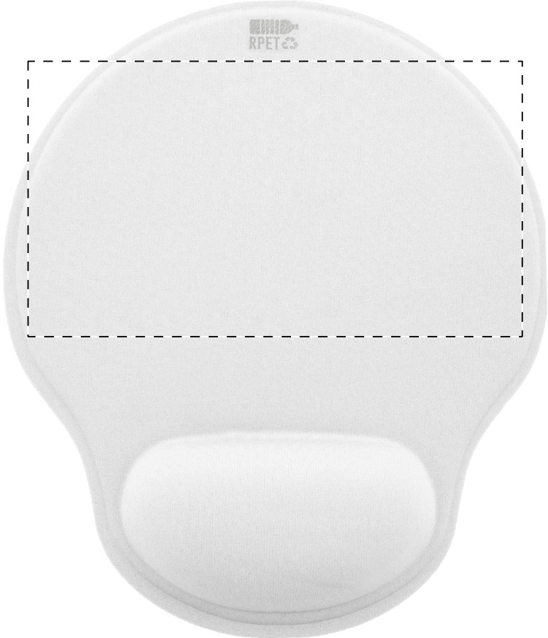 RPET-Mauspad mit ergonomischer Handgelenkauflage und rutschfester Unterlage aus Gummi.