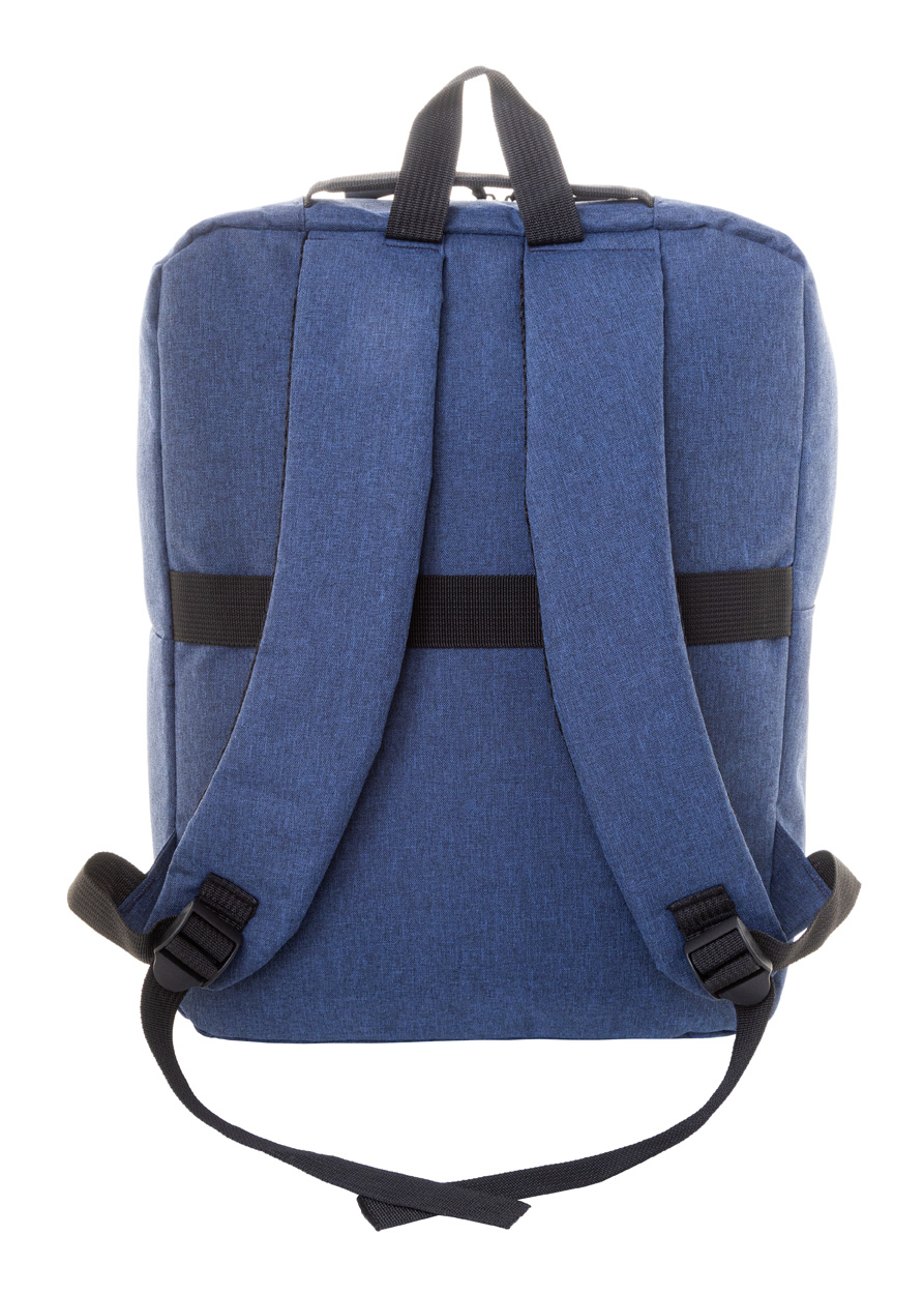 RPET-Rucksack mit Reißverschluss-Hauptfach, 2 Reißverschlusstaschen, Seitentasche und gepolstertem Laptopfach (15"). Mit Trolley-Gurt, gepolstertem Rücken und Schultergurten. Material: 600D RPET-Polyester. Mit RPET-Label.