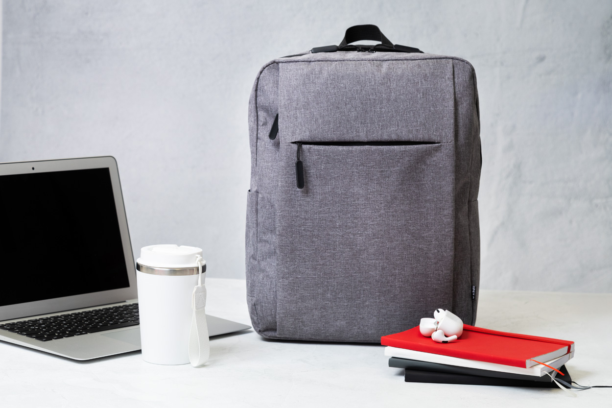 RPET-Rucksack mit Reißverschluss-Hauptfach, 2 Reißverschlusstaschen, Seitentasche und gepolstertem Laptopfach (15"). Mit Trolley-Gurt, gepolstertem Rücken und Schultergurten. Material: 600D RPET-Polyester. Mit RPET-Label.